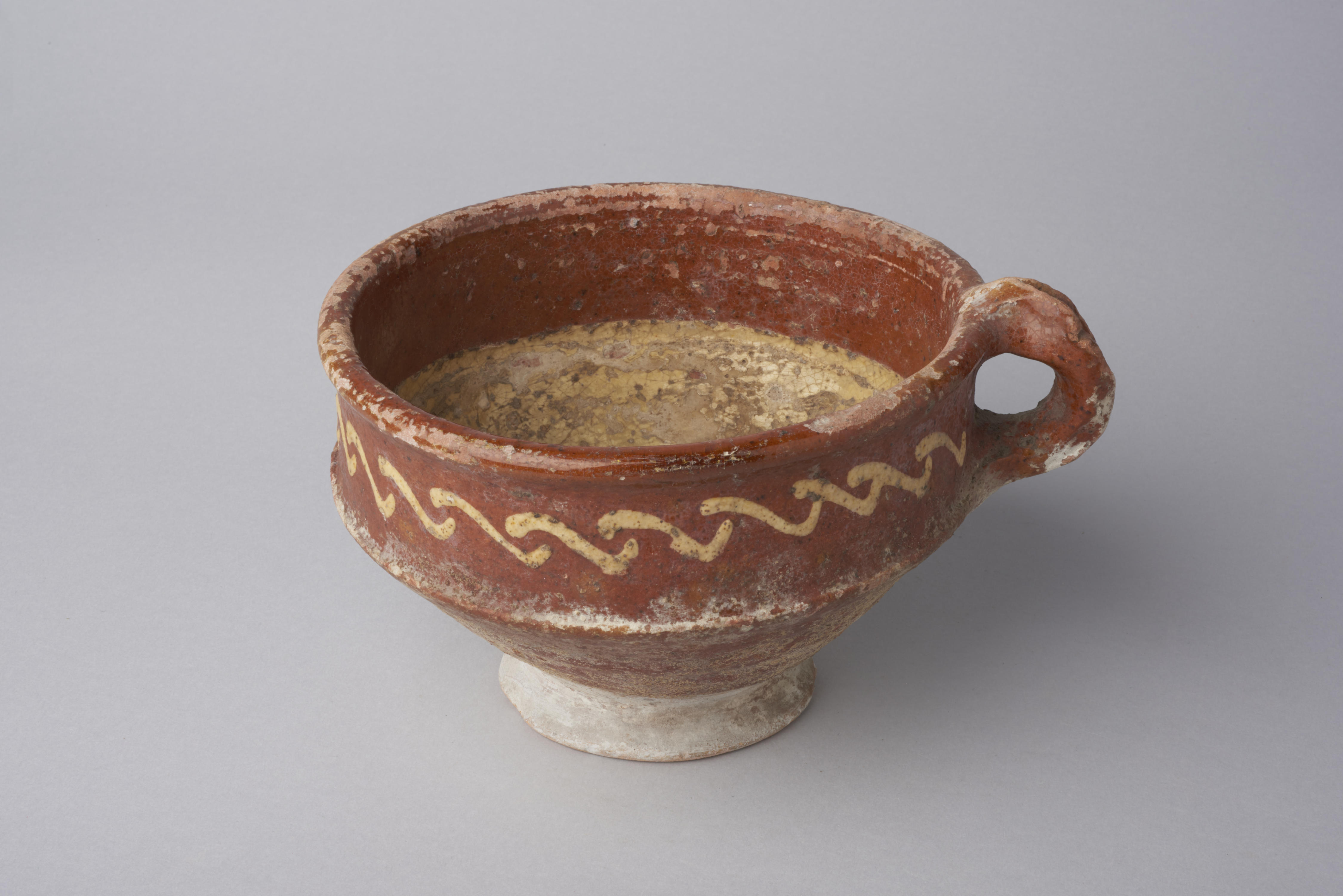 Melktest. Het glazuur aan de binnen- en buitenkant is aangetast door het gebruik en de inwerking van melkzuren en zouten.