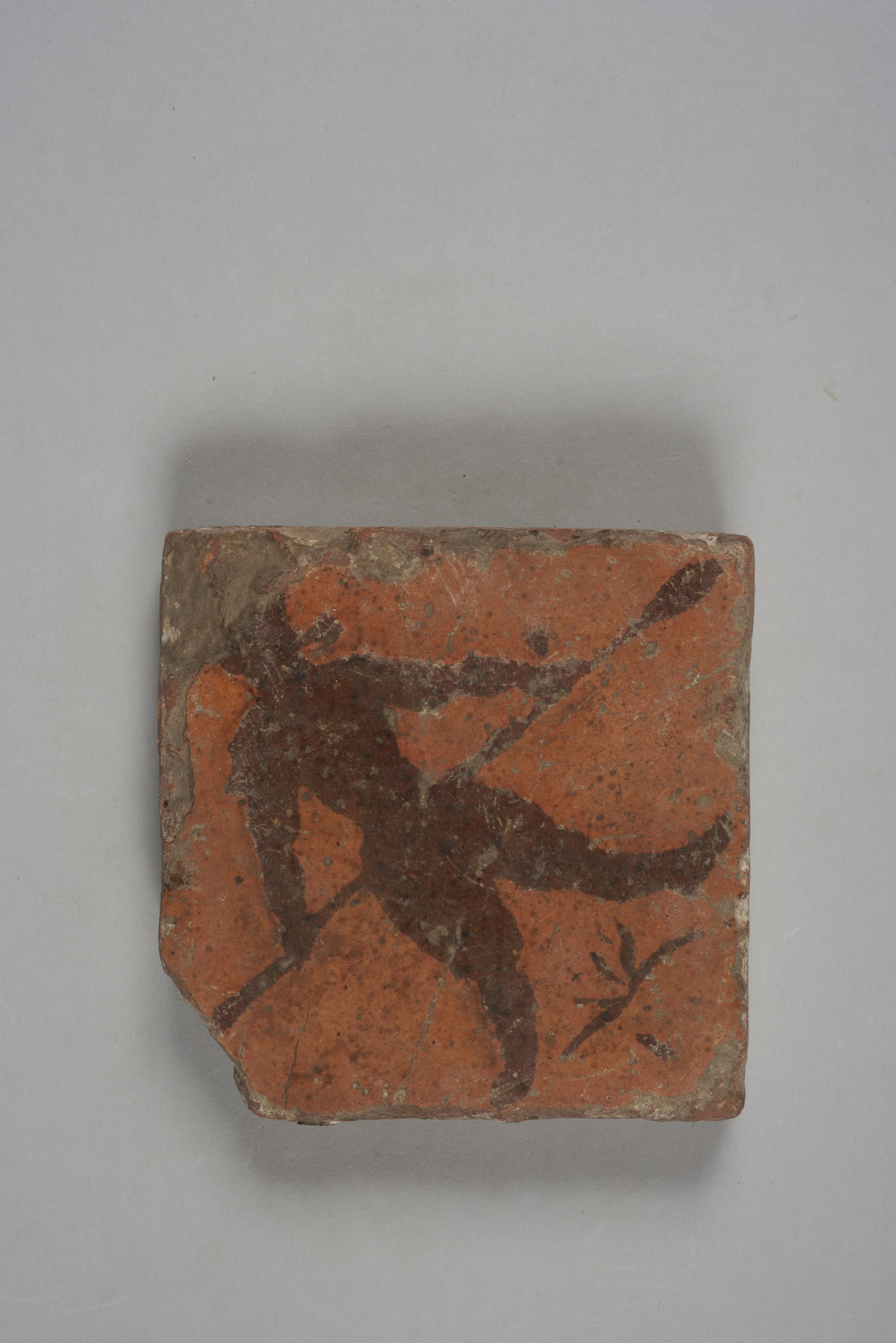 Vloertegel met een voorstelling van een man met een lans of broodschieter.