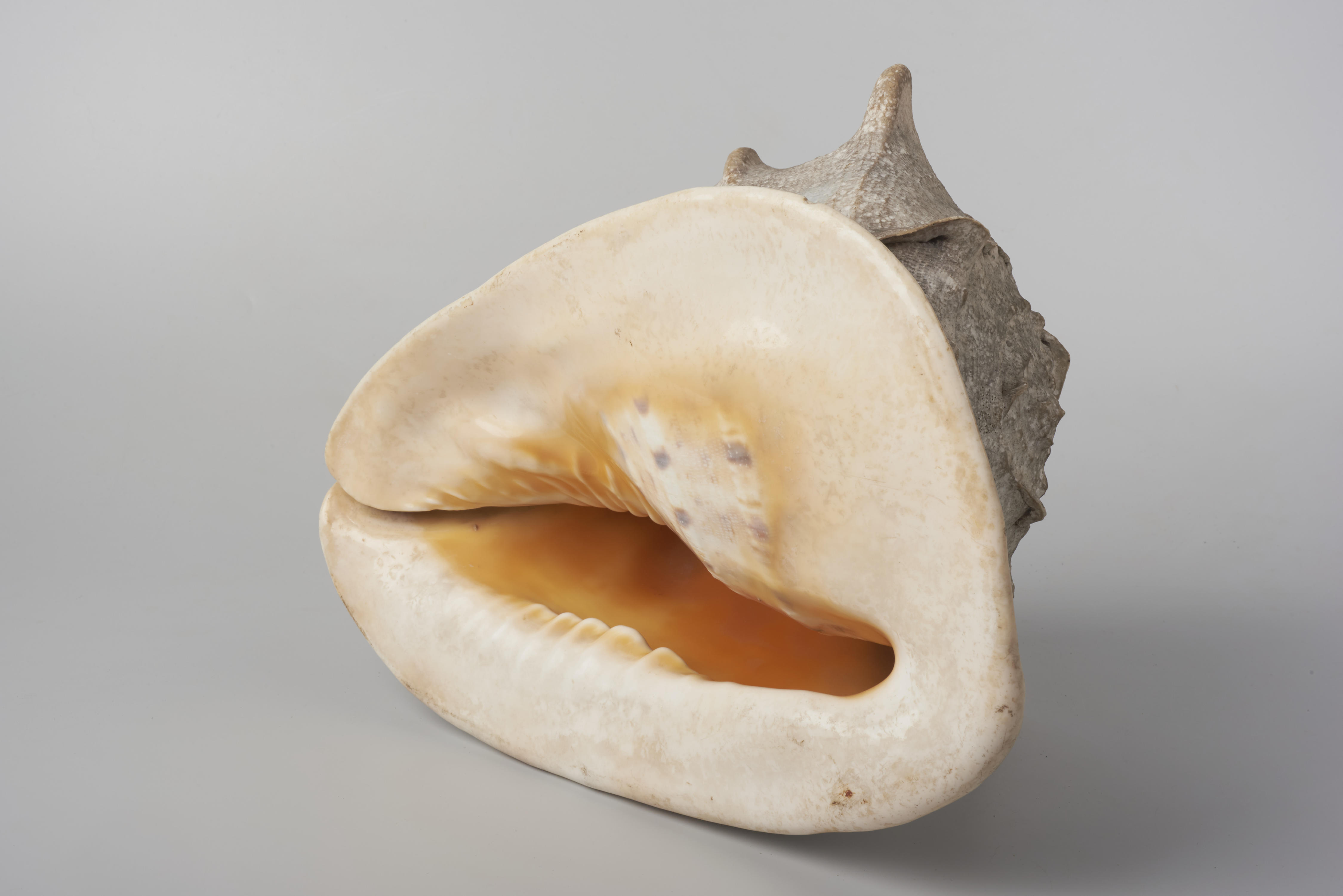Schelp, afkomstig uit West-Indië. Dergelijke schelpen zijn wel gebruikt als schoorsteenversiering.