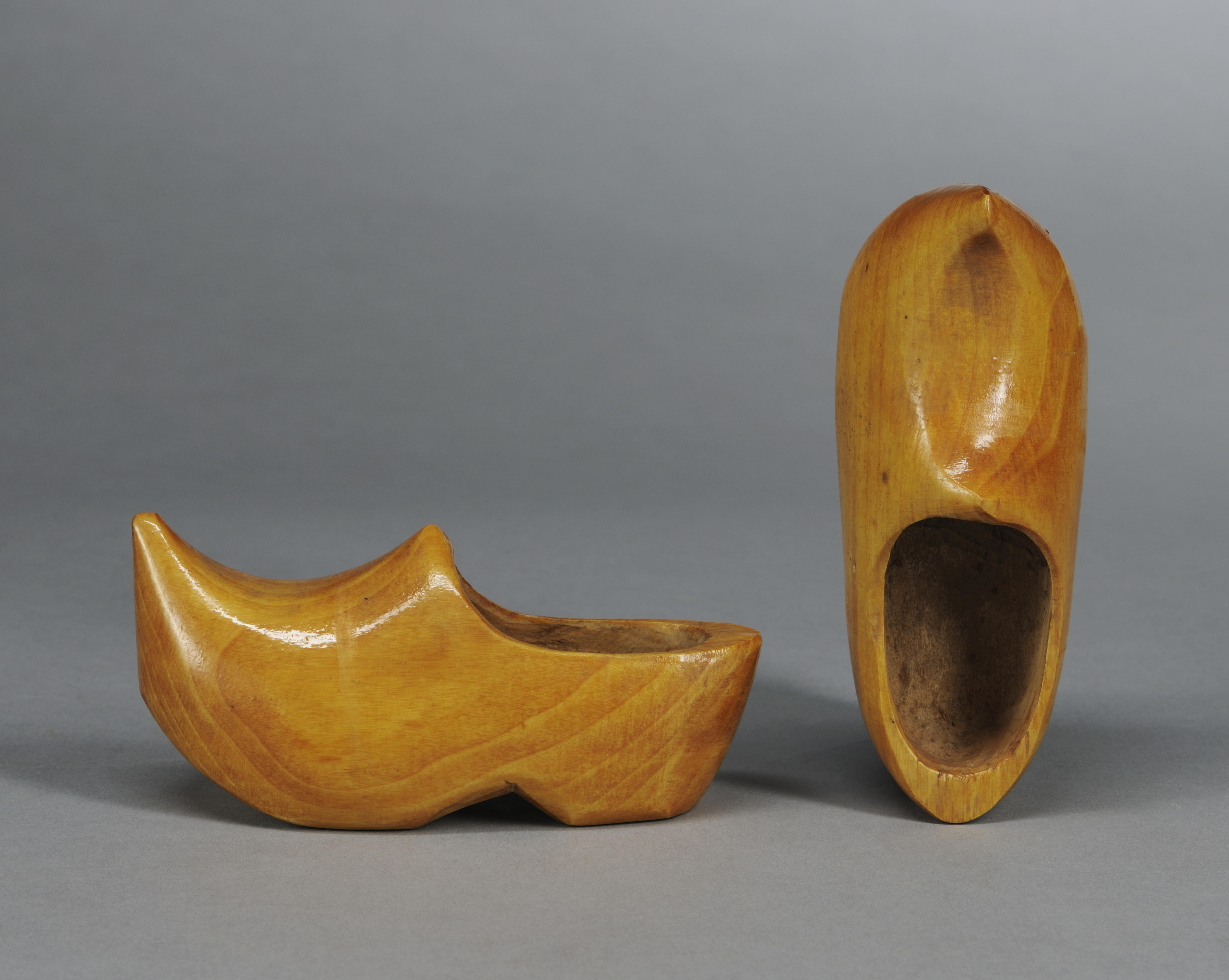 Miniatuurklomp van het Middelburger type. De klompen zijn van gelakt wilgenhout en met de hand gemaakt door de Nijmeegse klompenmaker J. de Kroon. Klompen zijn niet uniek voor Nederland geweest, maar er wel veel gedragen. Het was het daagse schoeisel van mannen, vrouwen en kinderen. Mensen die het zich konden veroorloven, droegen voor nette gelegenheden ...