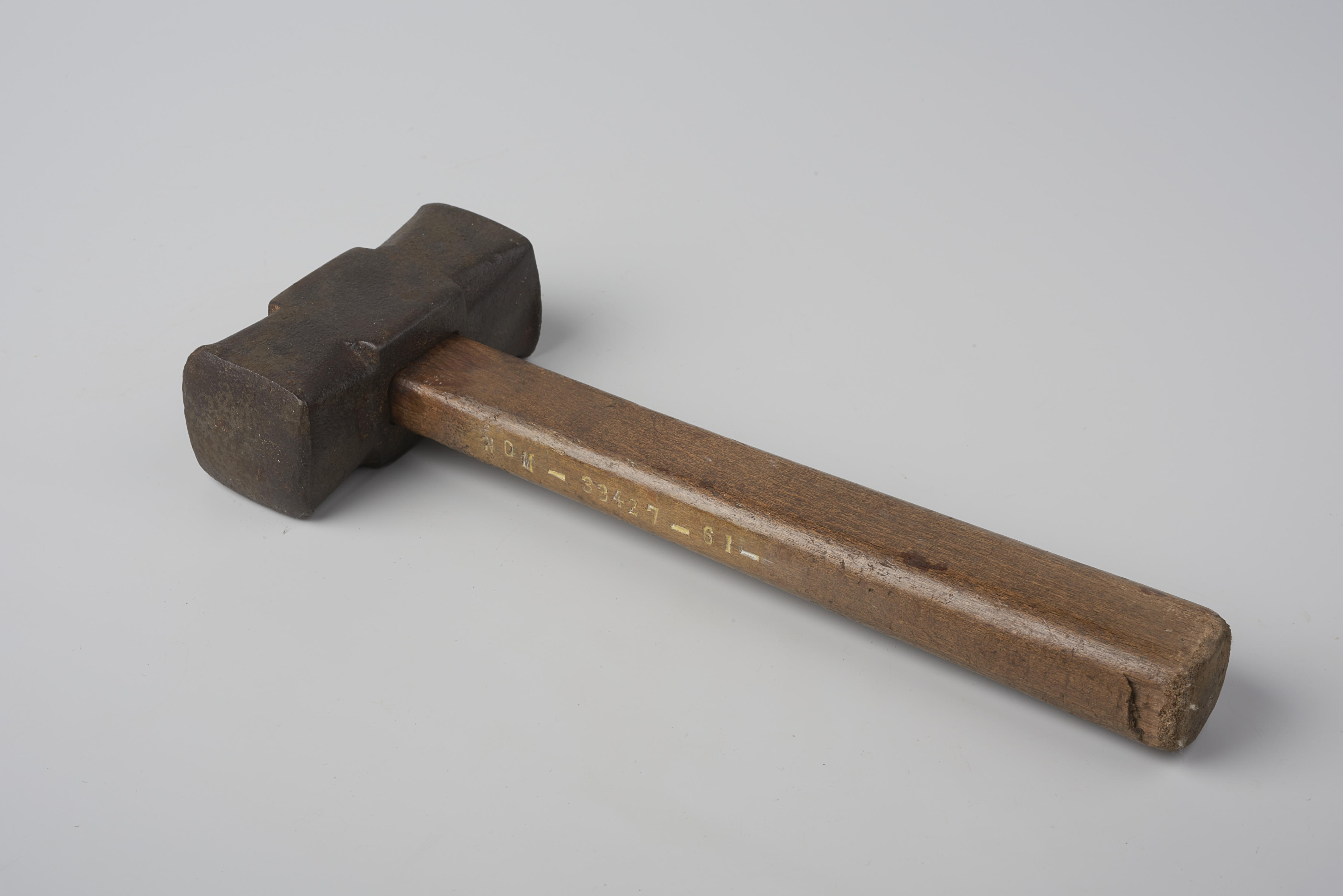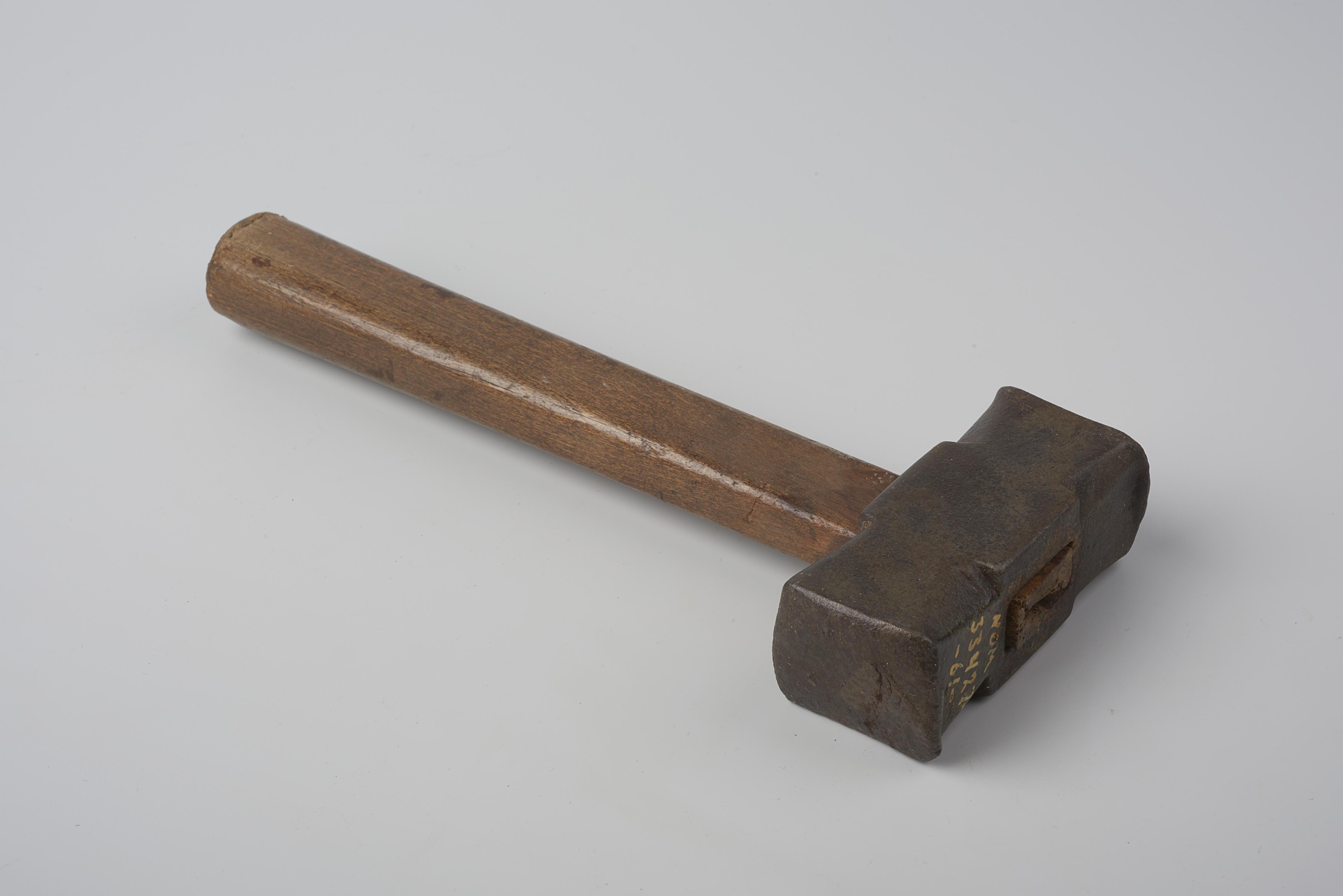 Metselaarsmoker of vuist, Hollands model. Een vuist heeft een lichtere hamerkop en kortere steel dan een moker. Deze hamer is gebruikt door een metselaar voor sloopwerk.