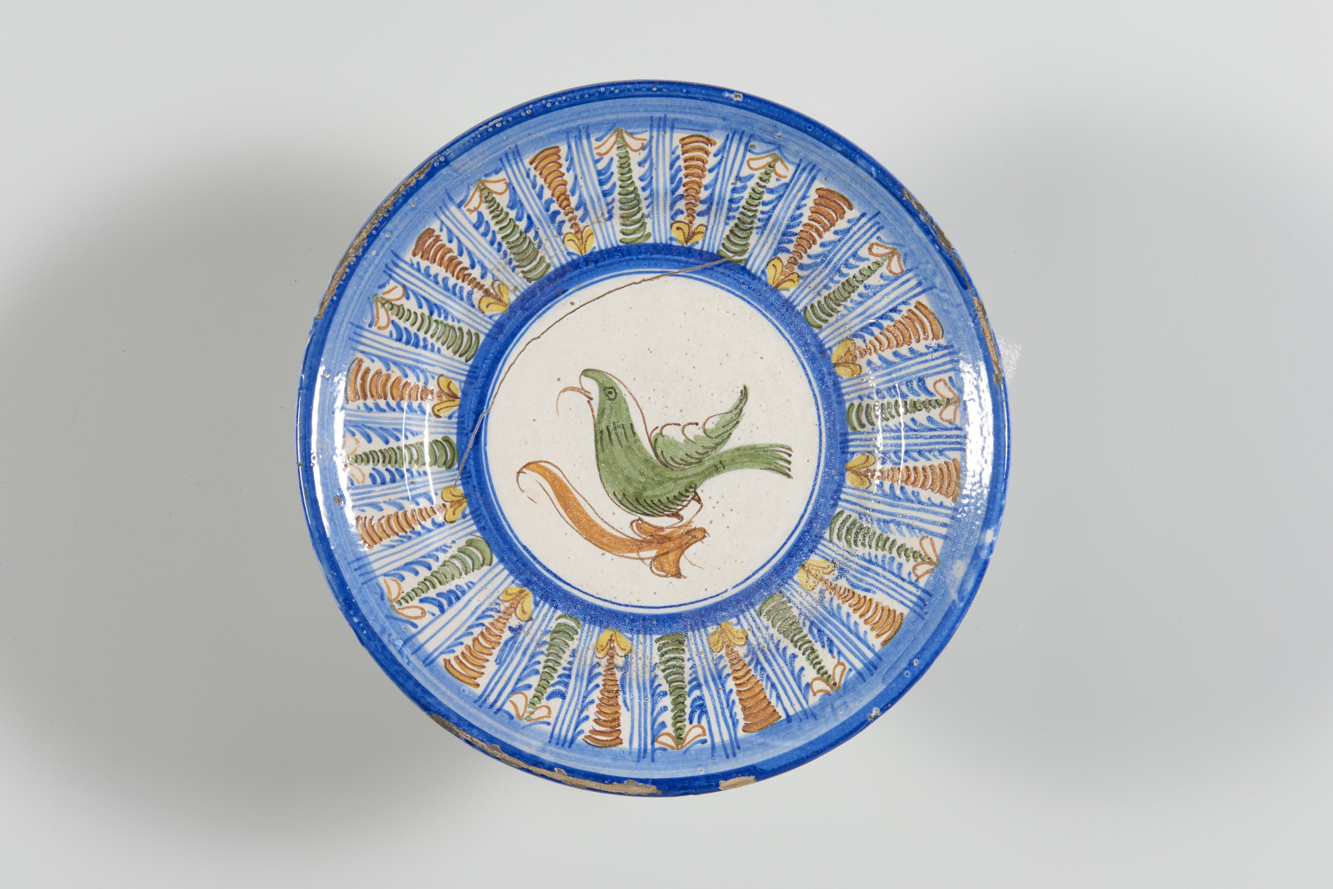 Bord met in het midden een voorstelling van een vogel.