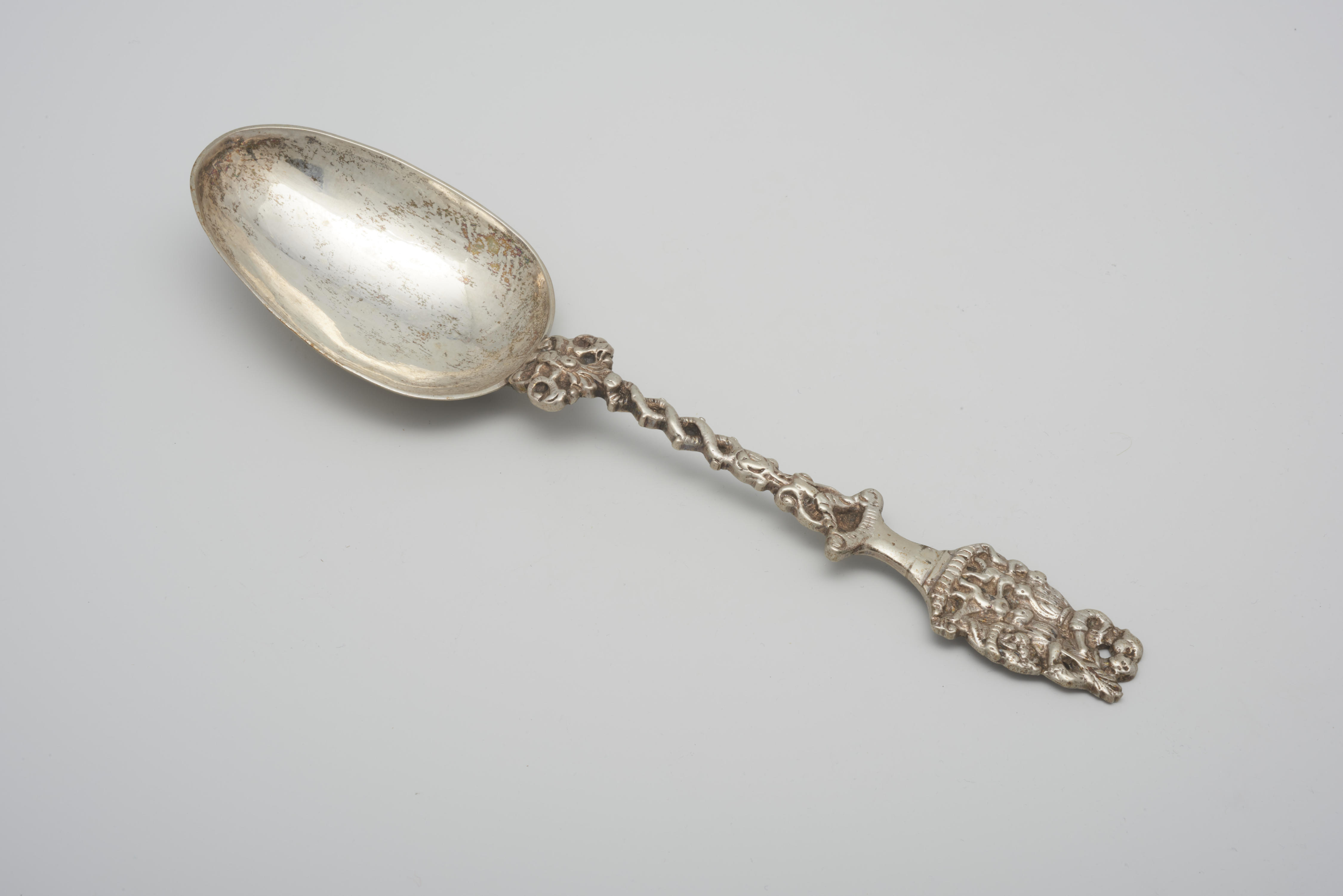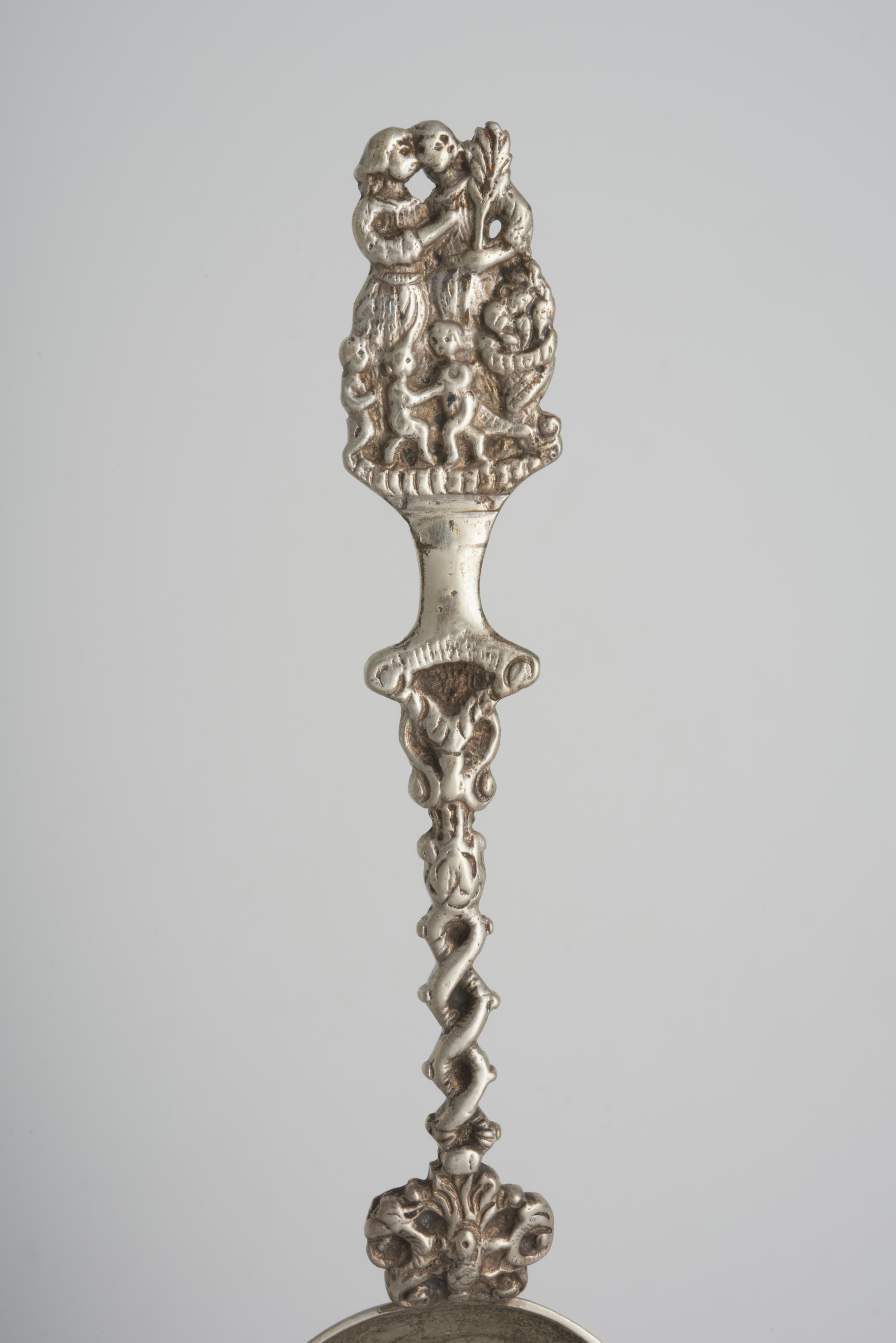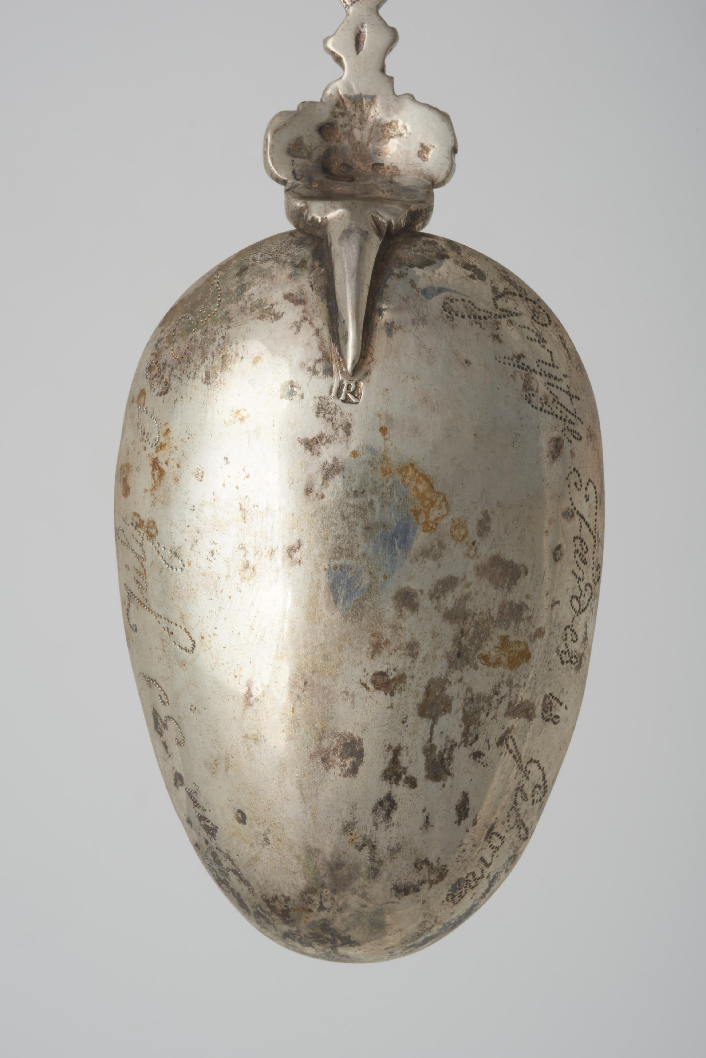 Een geboortelepel werd meestal gegeven wanneer het kind levensvatbaar was, dus soms pas na een paar jaar na de geboorte. Op de lepels staat vaak de naam, de geboortedatum van het kind en soms de plaats waar het werd geboren. Bij sommige lepels staat ook de sterfdatum in de bak gegraveerd. Deze lepel heeft een ...