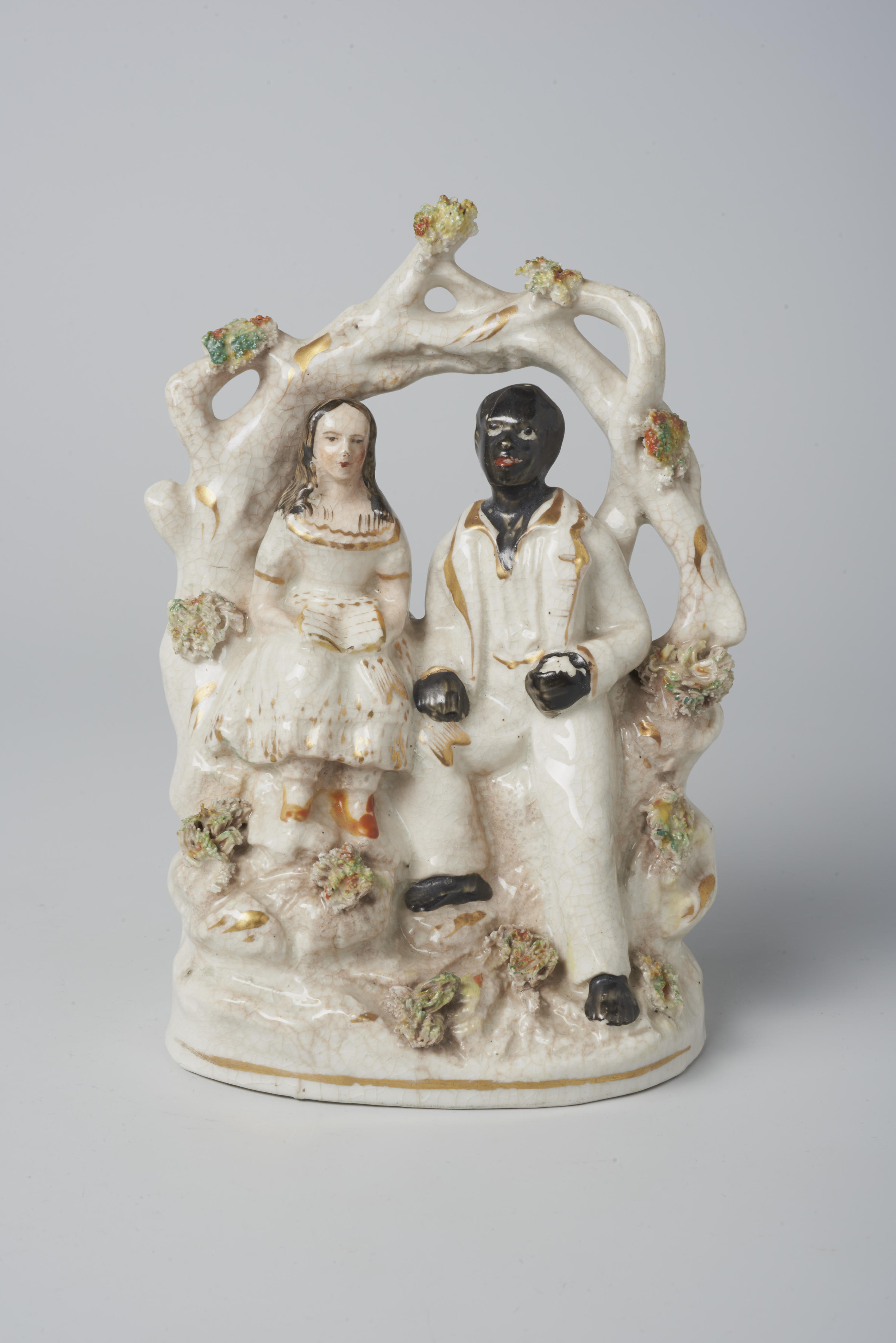 Beeldje van twee personages uit het boek 'Uncle Tom's Cabin' (1852) van Harriet Beecher Stowe. Om duidelijk te maken dat het om de bekendste tot slaaf gemaakte ter wereld ging, werd Uncle Tom op dit beeldje vergezeld door een andere romanfiguur: Eva St. Clare. In het boek redde hij haar van de verdrinkingsdood, waarna haar ...