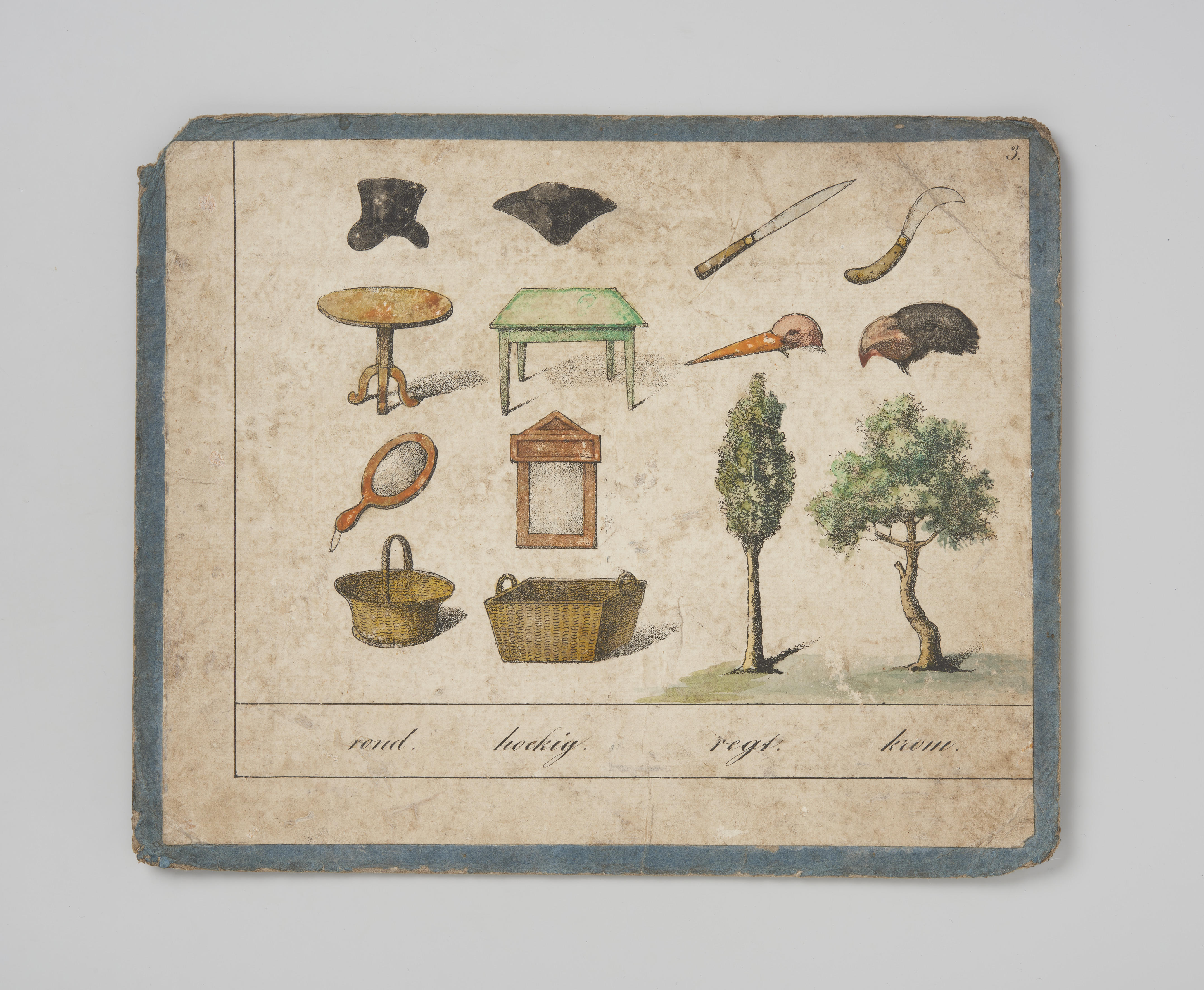 Op karton geplakte onderwijsprent, gedrukt in lithografie. De prent is in 1839 uitgegeven door de Groninger R.J. Schierbeek Jr. Dit is afbeelding 3 van prent nummer 19, uit een serie van 20 prenten. De serie is in Berlijn ontworpen door de onderwijzer Carl Wilke. De onderwijskundige Berend Brugsma vertaalde de teksten en introduceerde de platen ...