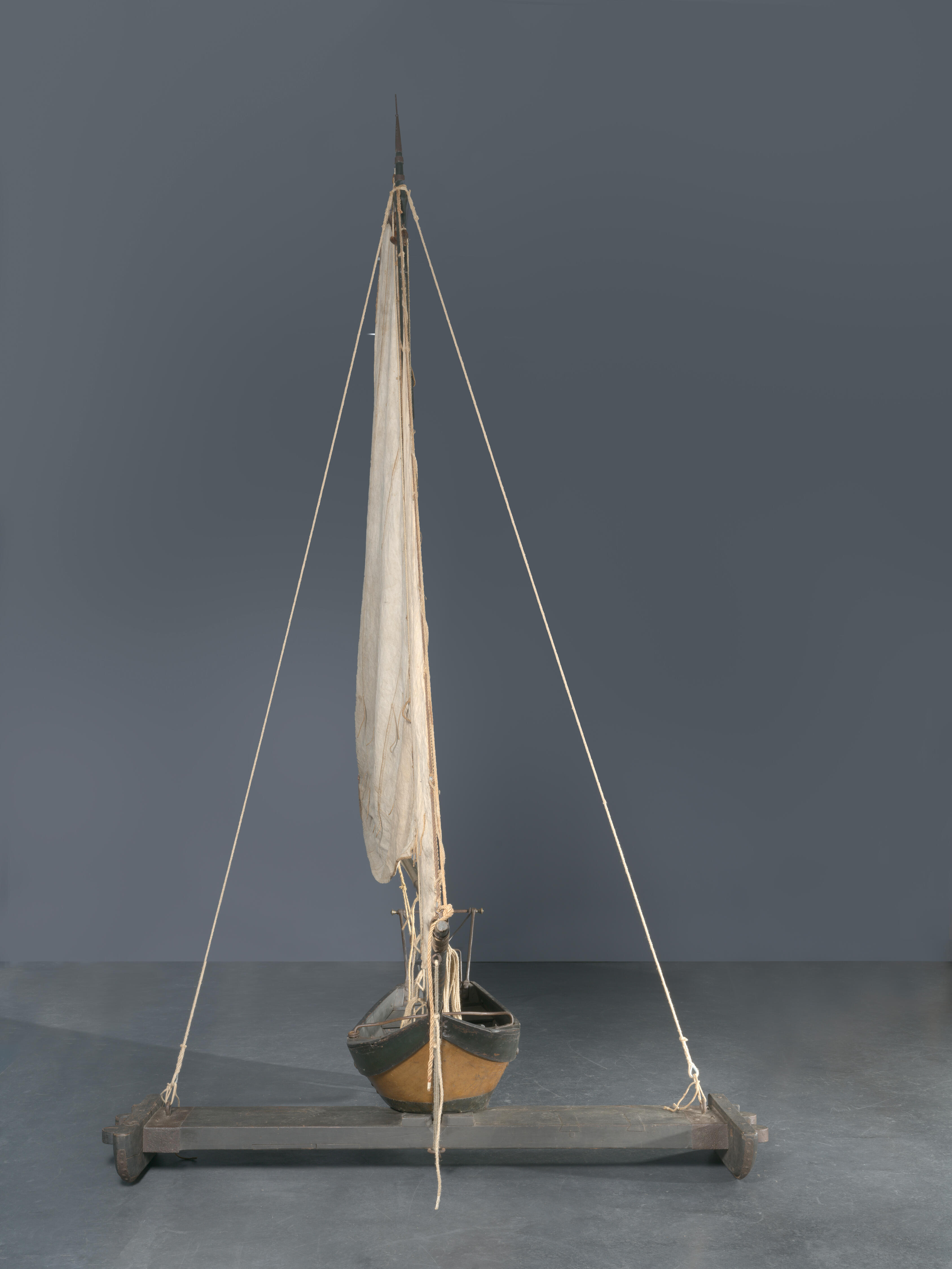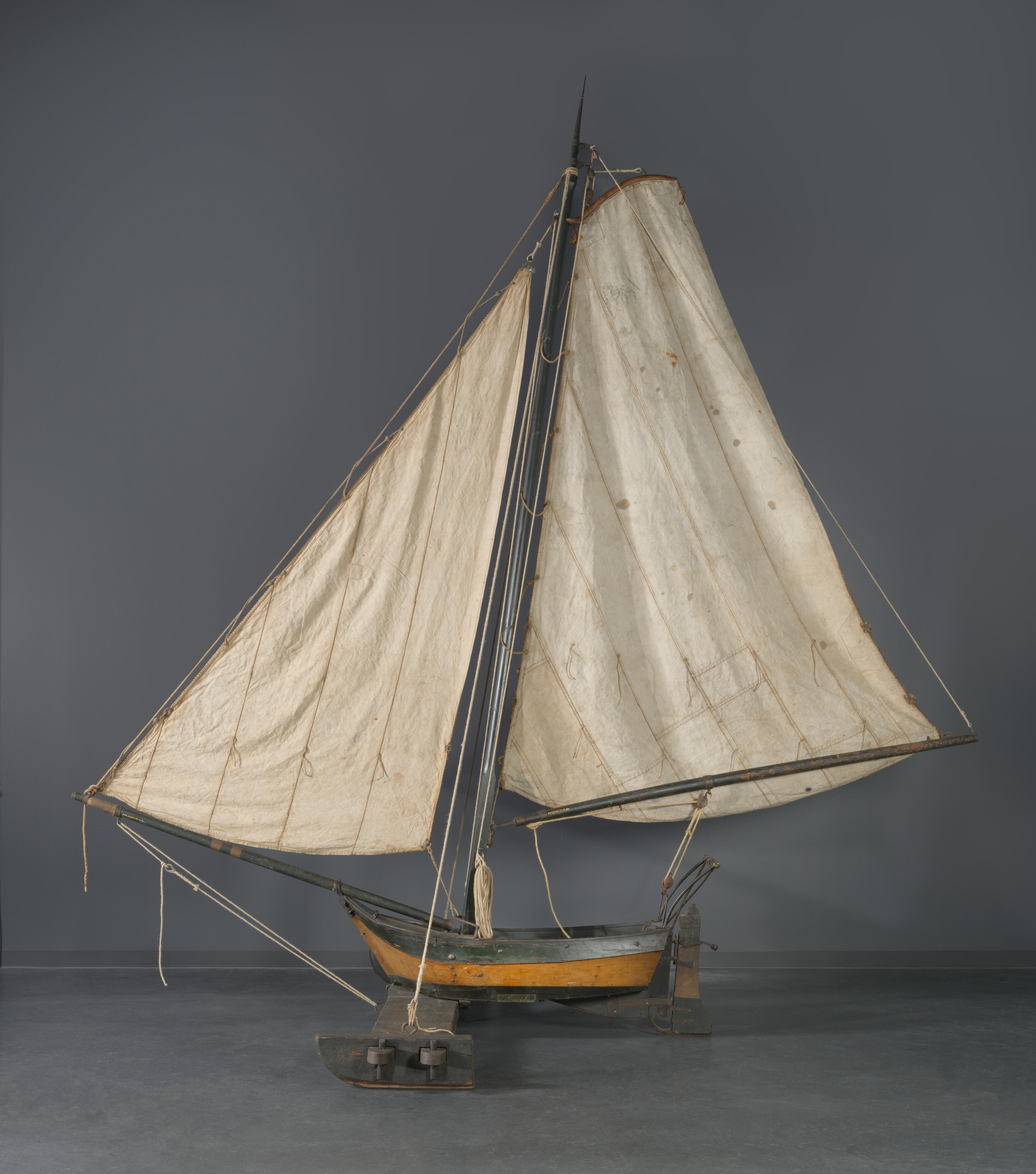 Een ijsschuit of ijszeiler bestaande uit een kleine, houten schuit met twee zeilen op drie glij-ijzers of schaatsen, gedateerd omstreeks 1800. Vanwege zijn kleine formaat was deze ijszeiler licht en dus snel. Vanwege de lengte zal het scheepje ook erg snel gereageerd hebben op beweging, wat 'driftig sturen' wordt genoemd. Dit ijsscheepje werd ook wel ...