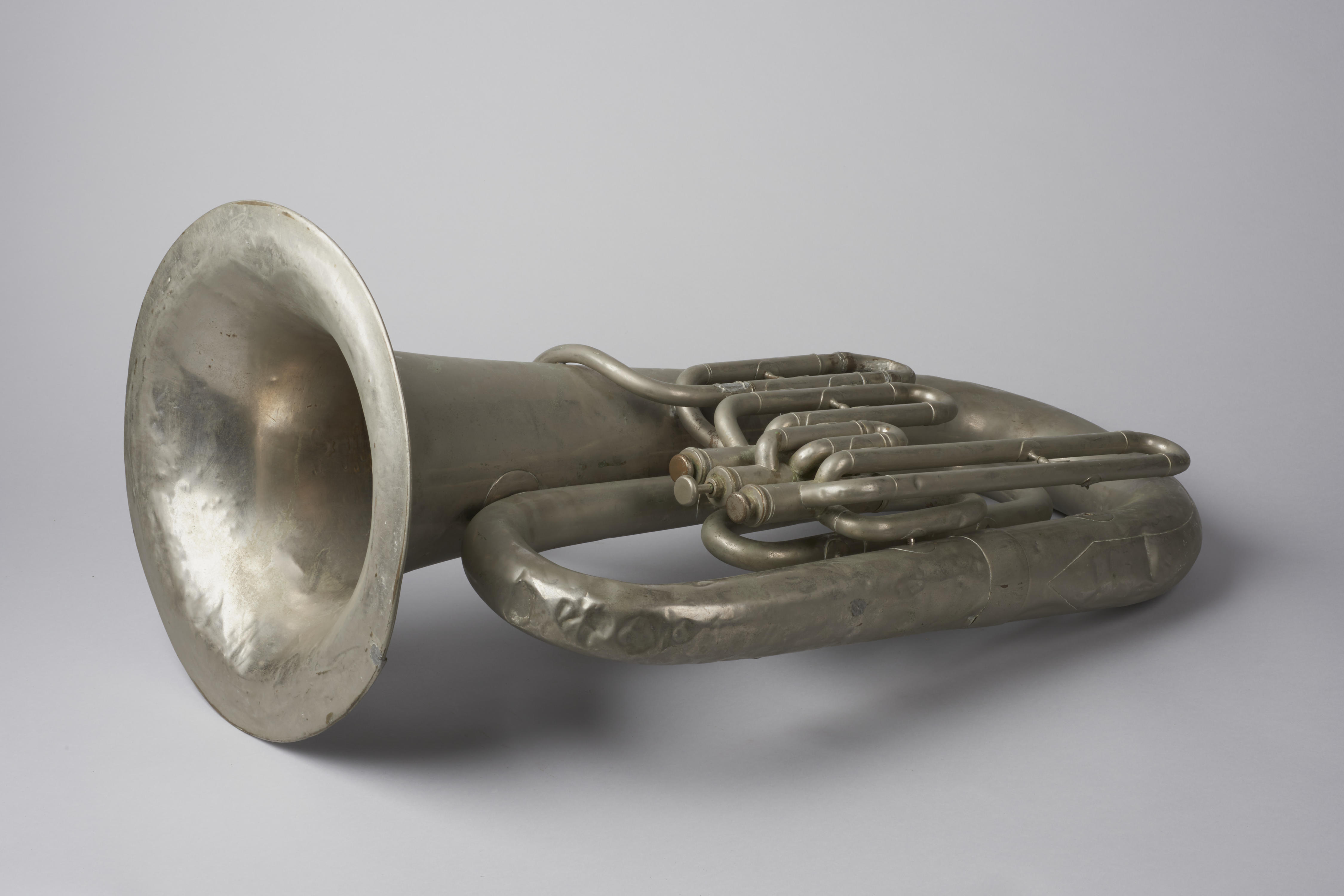 Tuba, afkomstig van het Leger des Heils in Arnhem. De tuba is eerder eigendom geweest van het NSB-orkest.