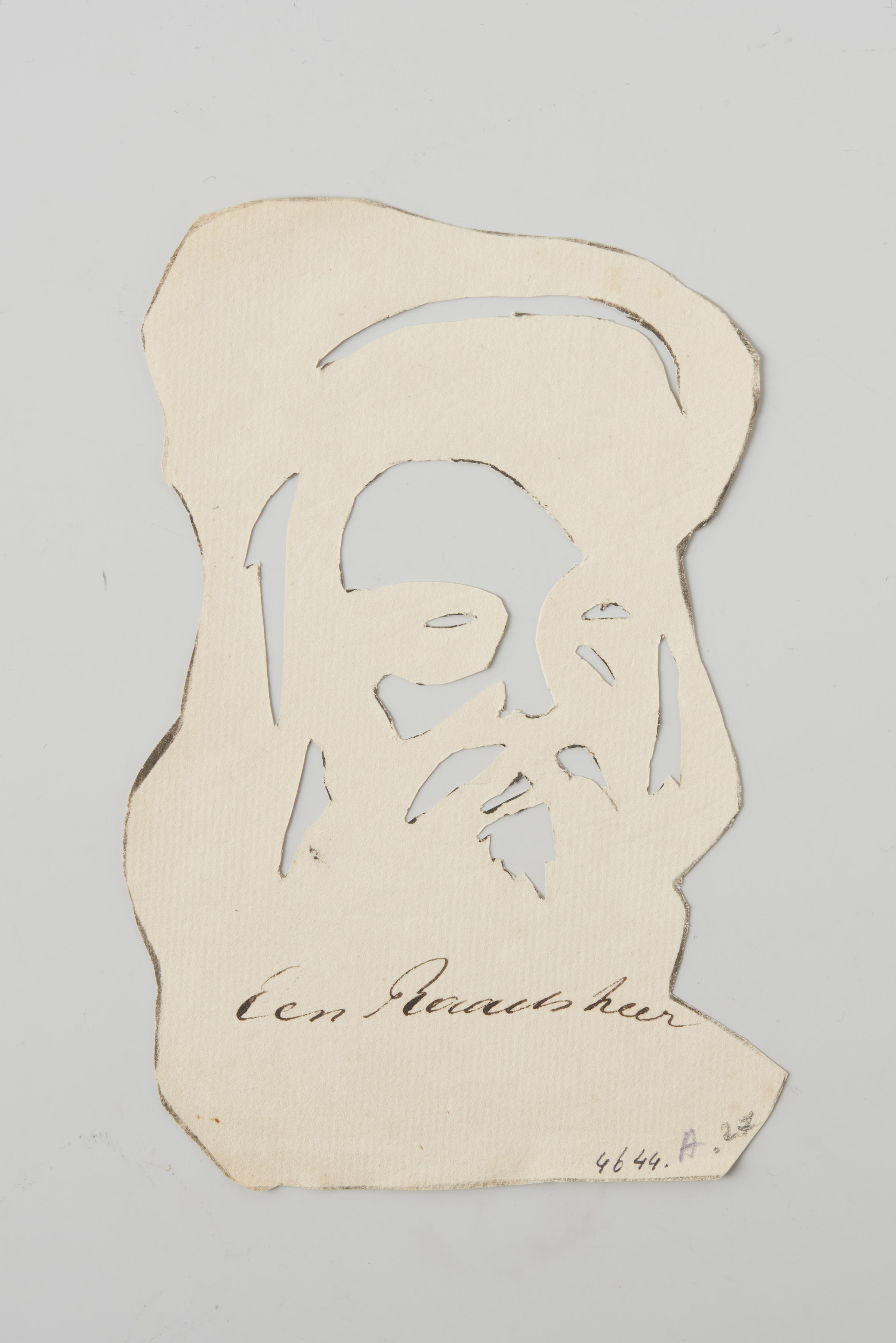 Coptografische voorstelling van een man. Het opschrift luidt: 'Een Raadsheer'.