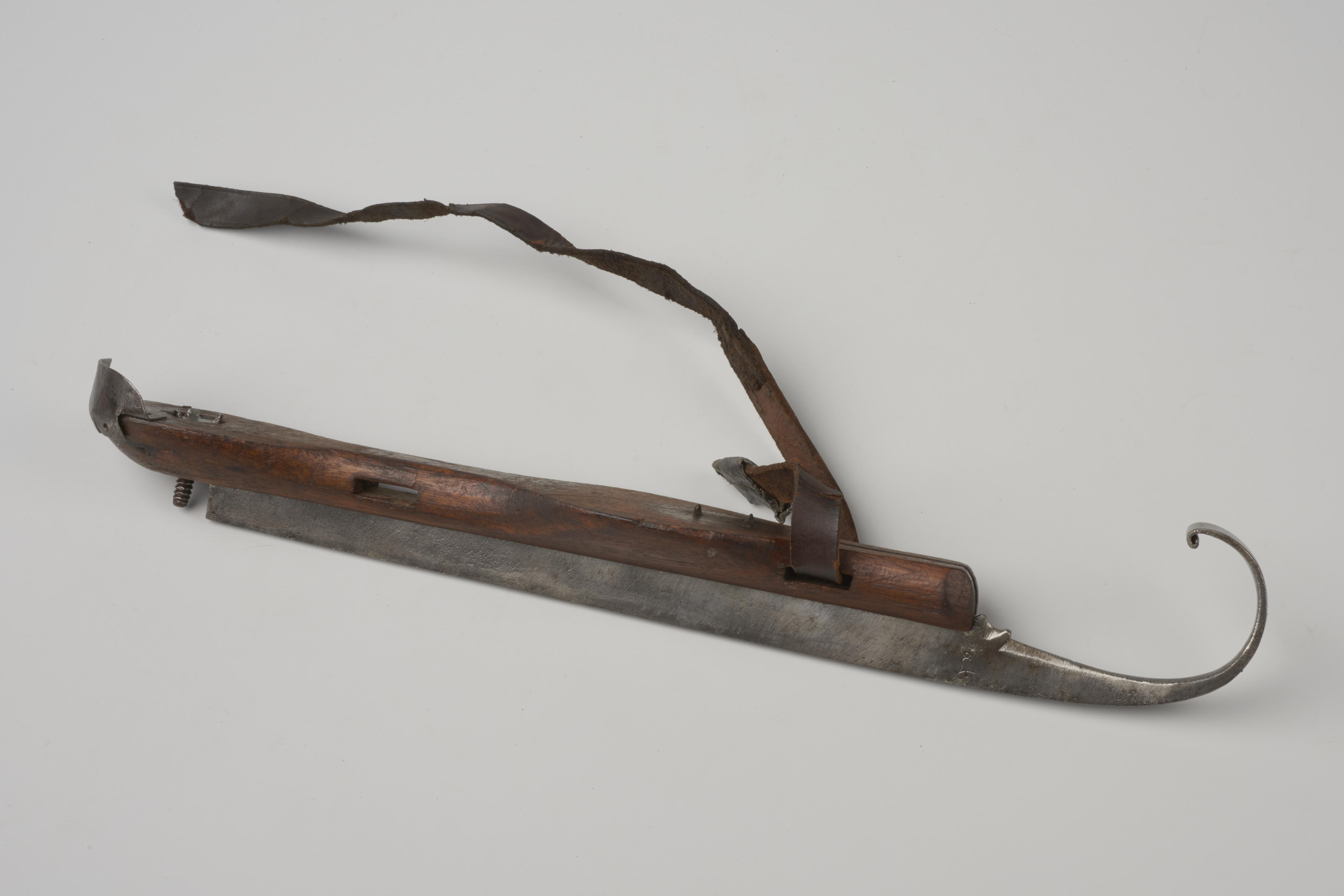 Schaats met een merkteken in de vorm van een bel, gemaakt in Duitsland.