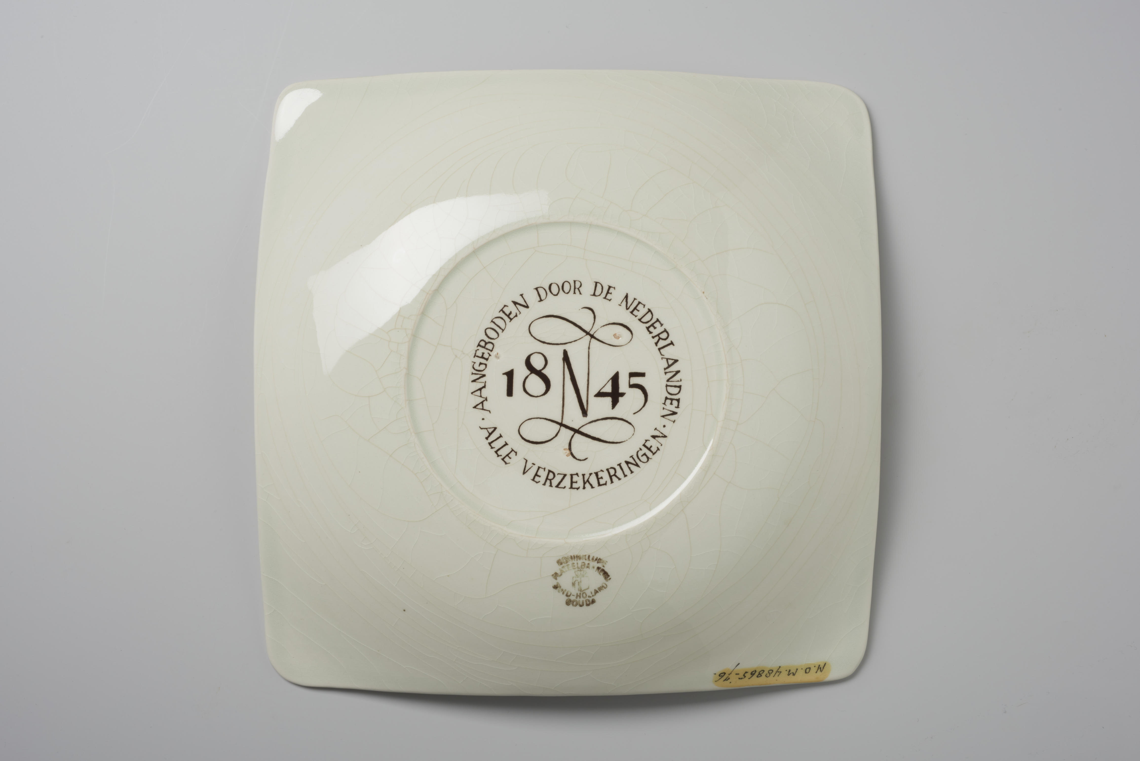 Bord met een voorstelling van Prometheus die in zijn rechterhand een fakkel vasthoudt. Met zijn linkerhand houdt hij de hand van een mensfiguur op de achtergrond vast. Naast Prometheus vliegen twee roofvogels. Rechts van hem zijn enkele gebouwtjes te zien. De tekst luidt: '1960 Lustrum III Prometheus 1845'.