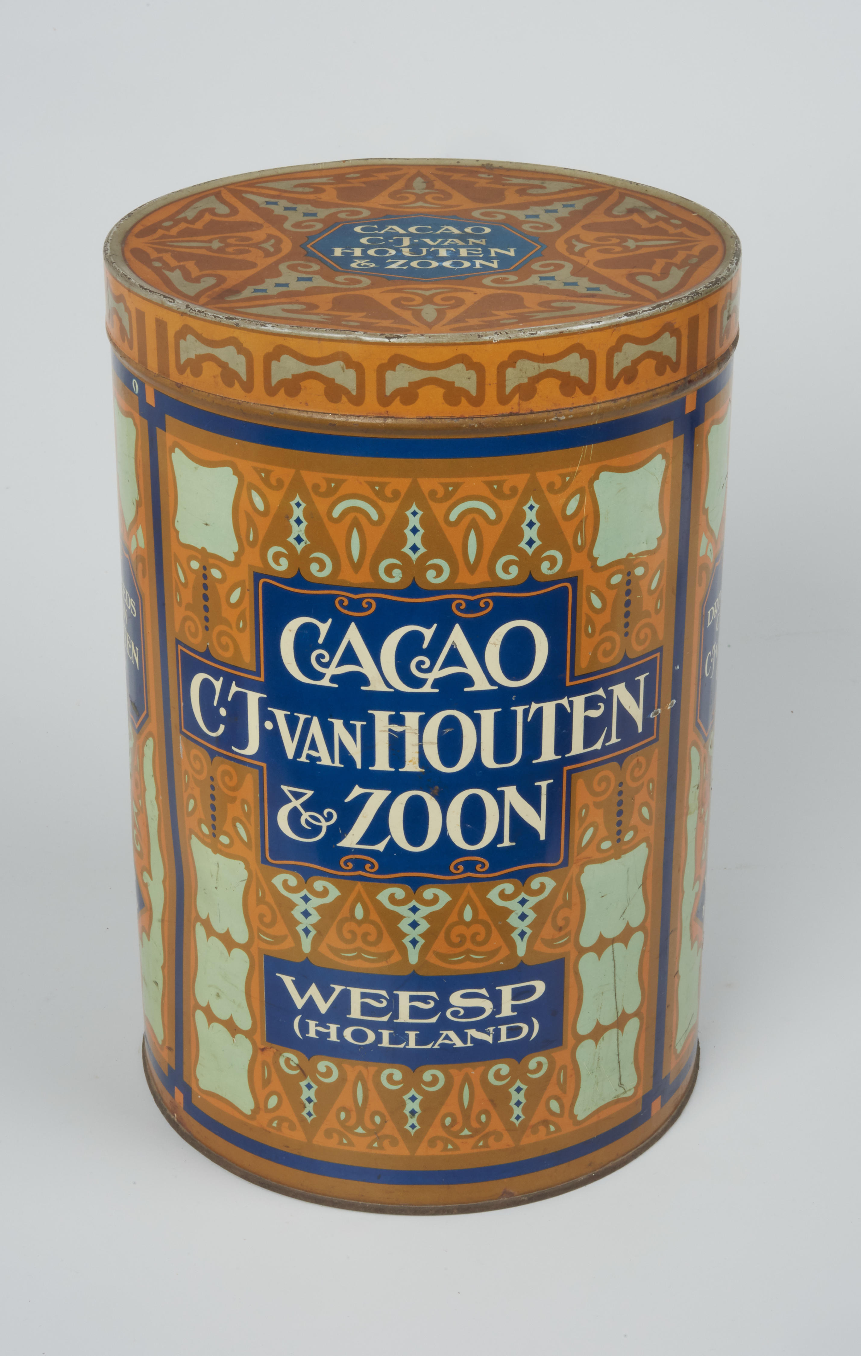 Bewaarblik van de Cacao- en Chocoladefabriek van C.J. van Houten & Zoon, ontworpen in 1929 door de grafisch ontwerper Jacob Nuiver. Het blik werd ontworpen ter ere van het honderdjarig bestaan van de fabriek. Het ontwerp is typisch Amsterdamse School. Nuiver liet zich inspireren door Javaans houtsnijwerk.