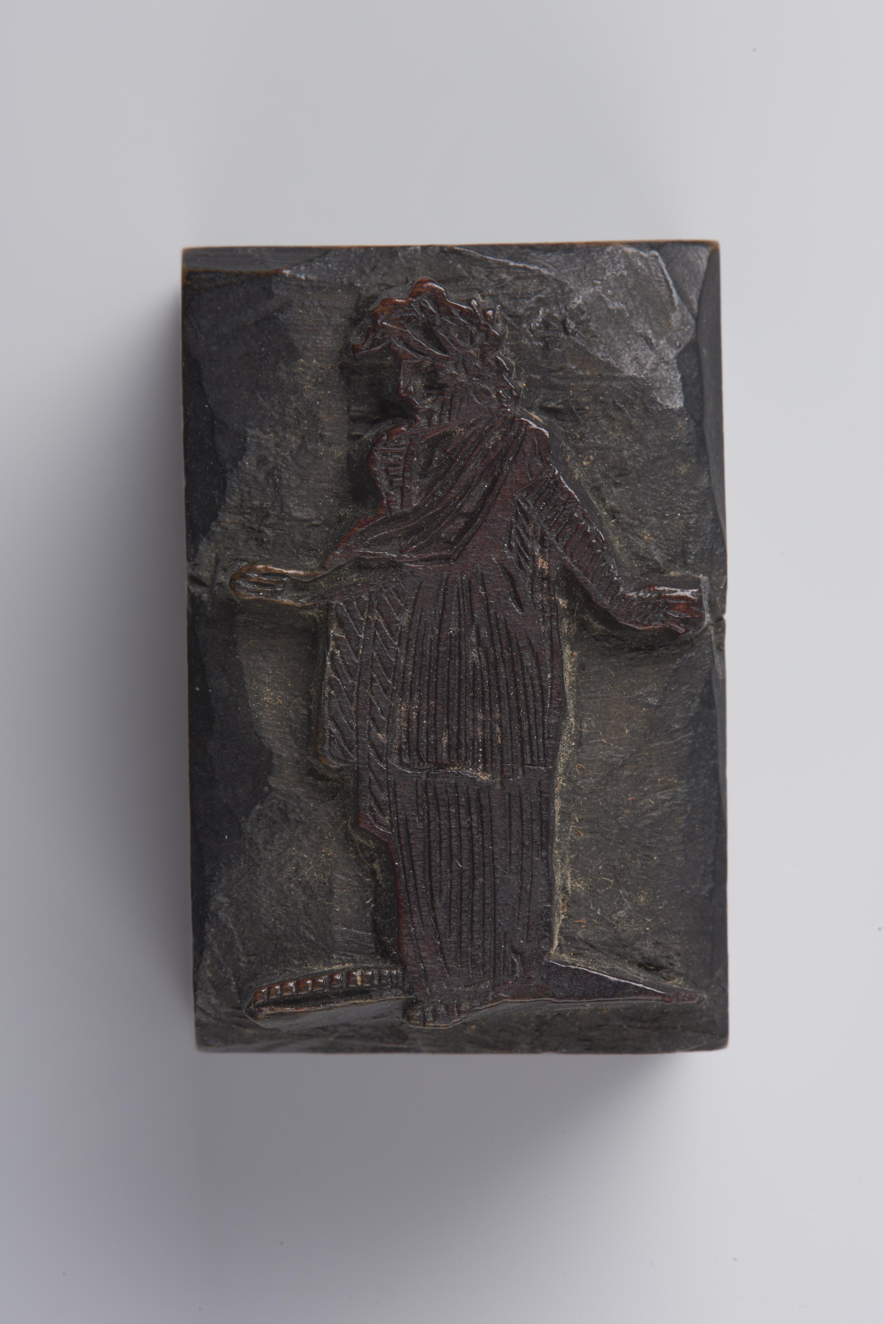 Houten cliché met de voorstelling van een vrouw.