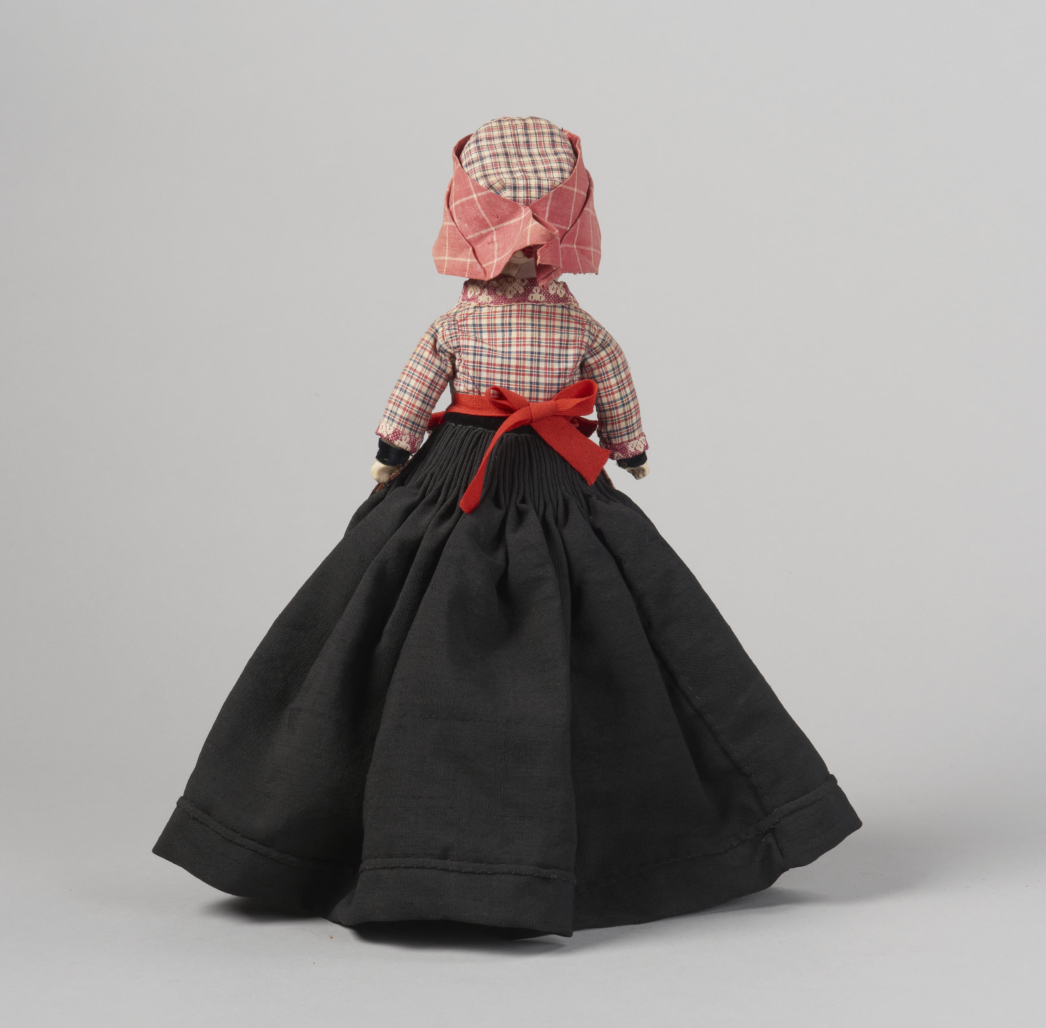 Miniatuurpop, gekleed als Hindelooper ongetrouwde vrouw in de daagse dracht in de negentiende eeuw.