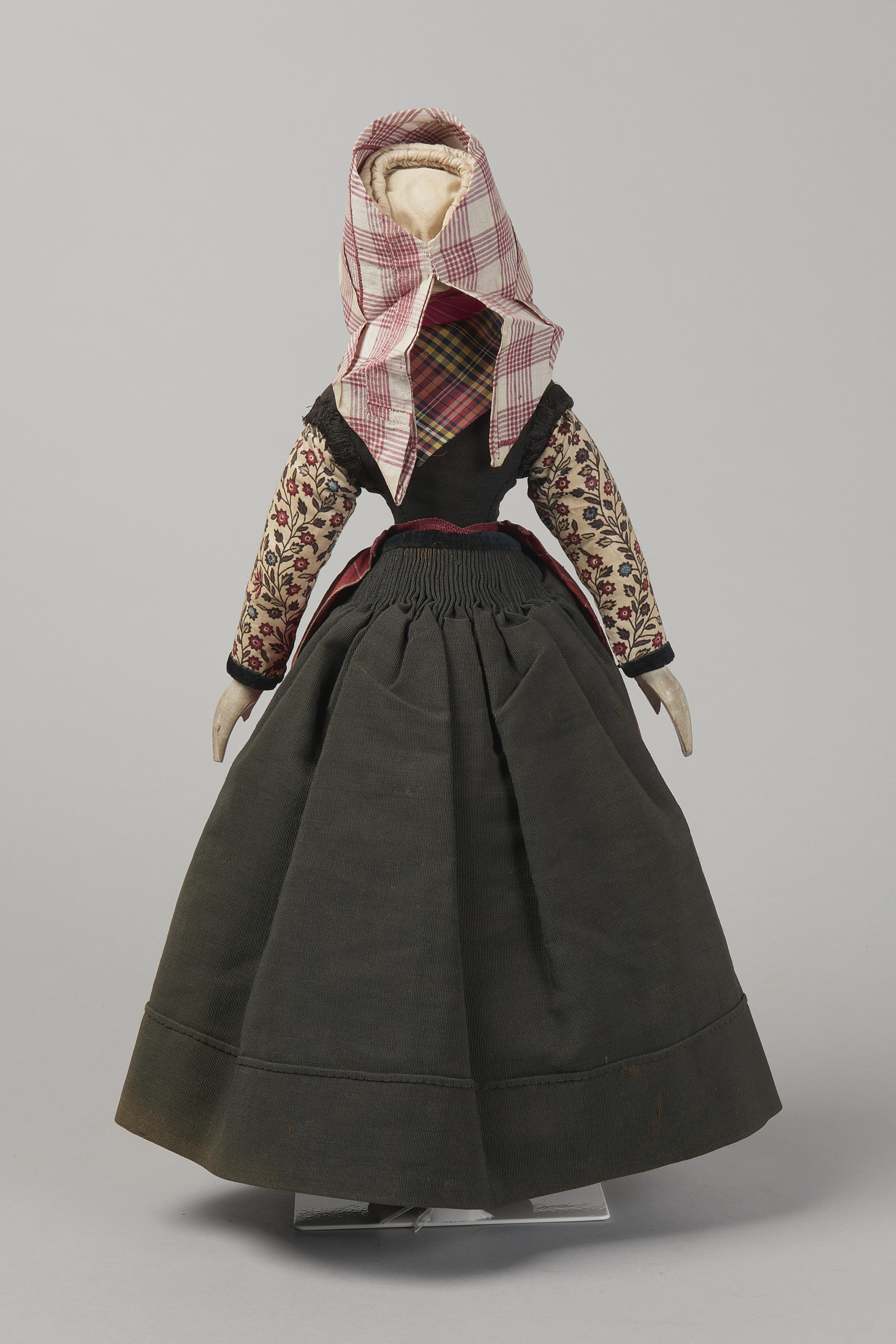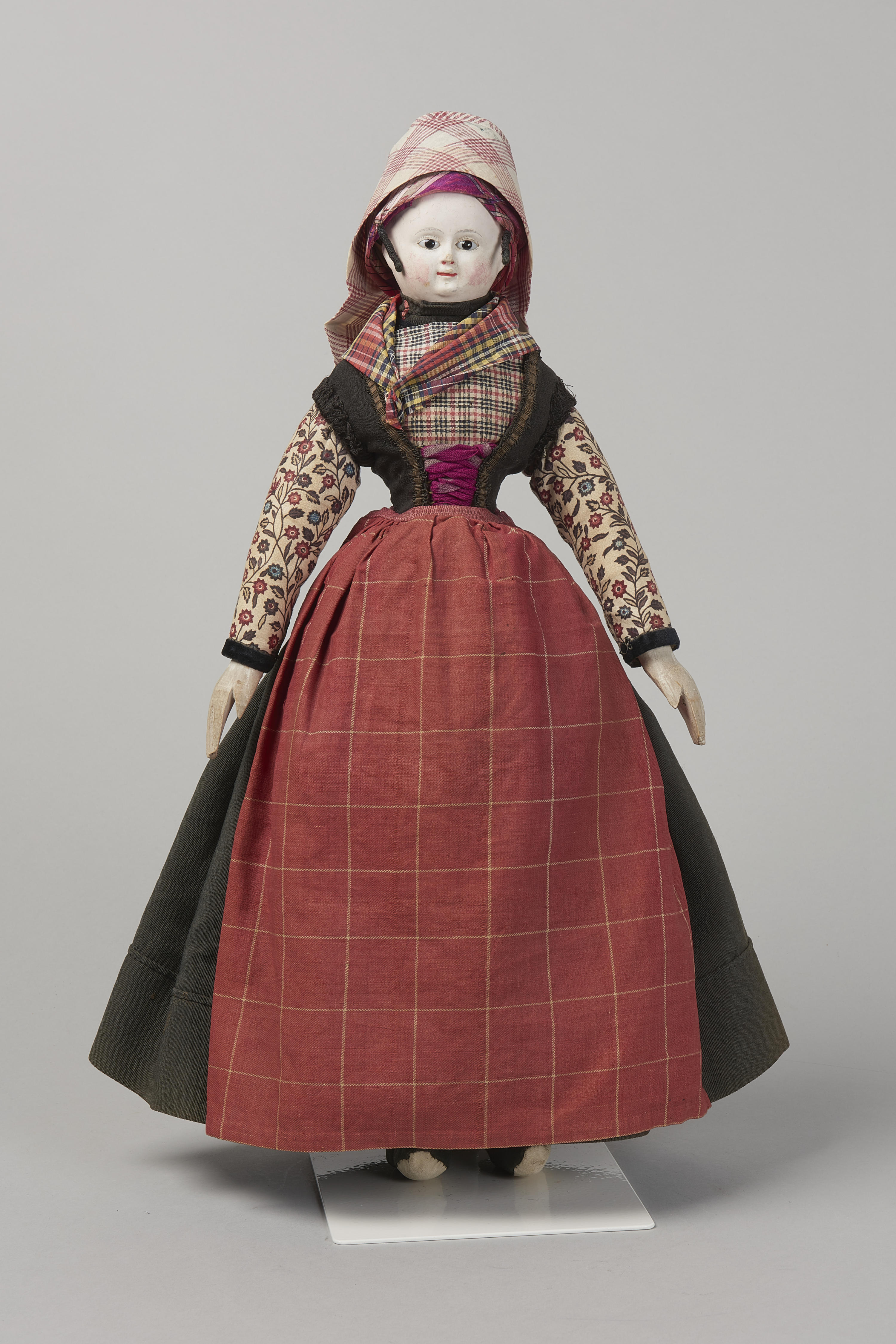 Miniatuurpop, gekleed zoals een ongetrouwde vrouw uit Hindeloopen in de negentiende eeuw.