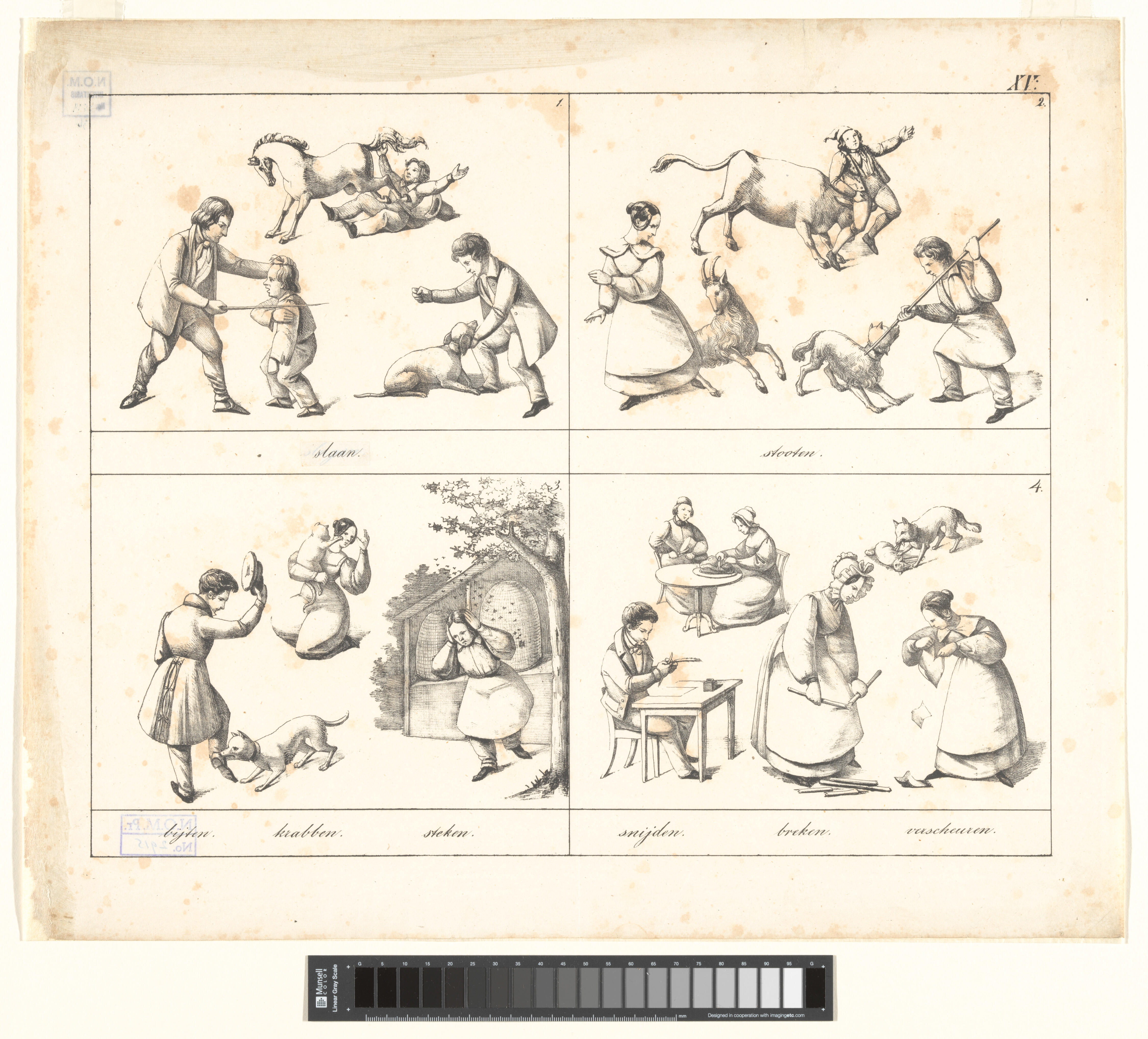 Oblong onderwijsprent, gedrukt in lithografie. De prent is in 1844 uitgegeven door de Groninger R.J. Schierbeek Jr. Dit is nummer 15 in een serie van 20 prenten. De serie is in Berlijn ontworpen door de onderwijzer Carl Wilke. De onderwijskundige Berend Brugsma vertaalde de teksten en introduceerde de platen in Nederland. Deze zogenaamde kwartetplaat kon ...