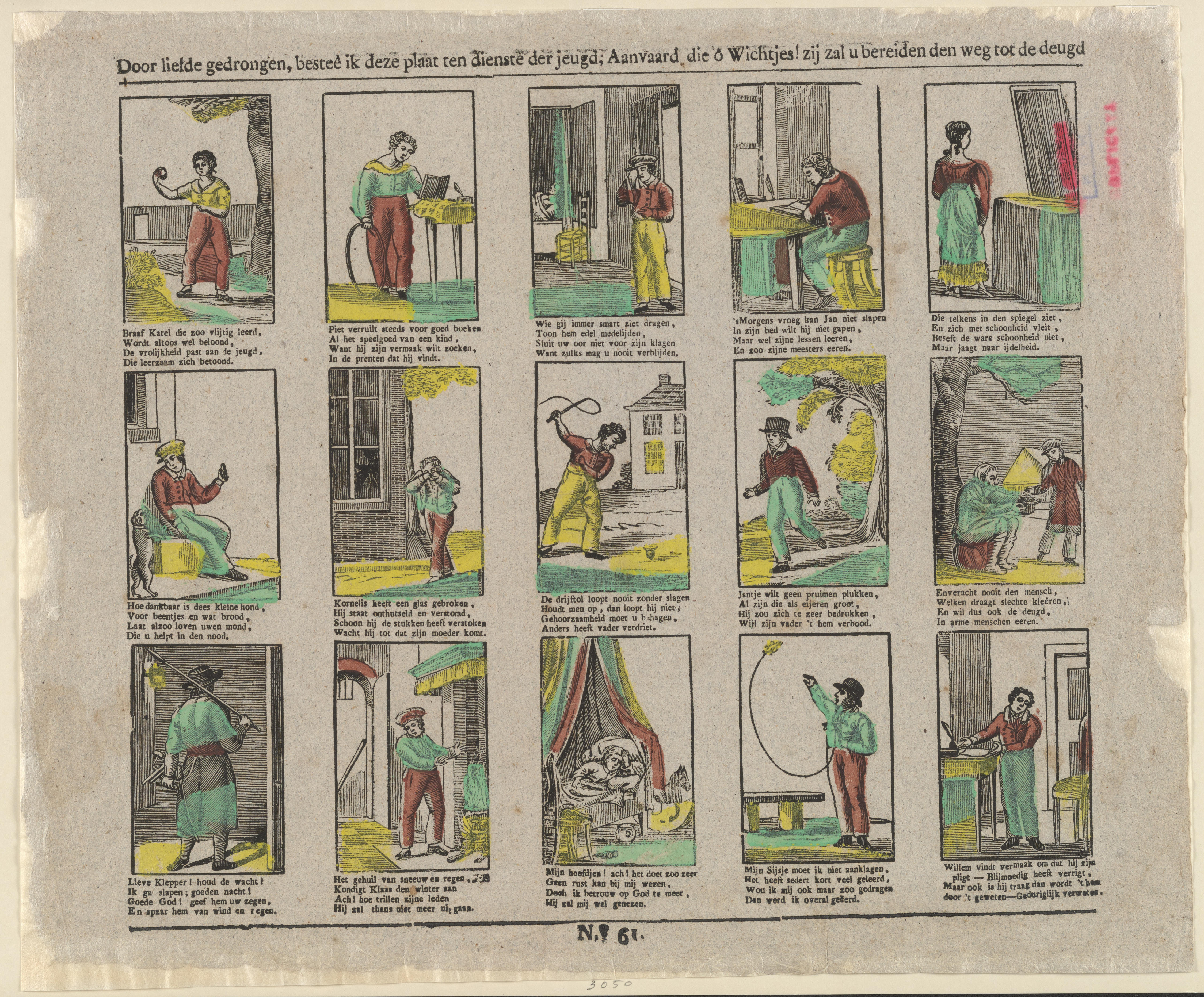 Door liefde gedrongen, bestee ik dit plaatje ten dienste der jeugd; Aanvaard die o Wichtjes! Zij zal u bereiden den weg tot de deugd. - N.61