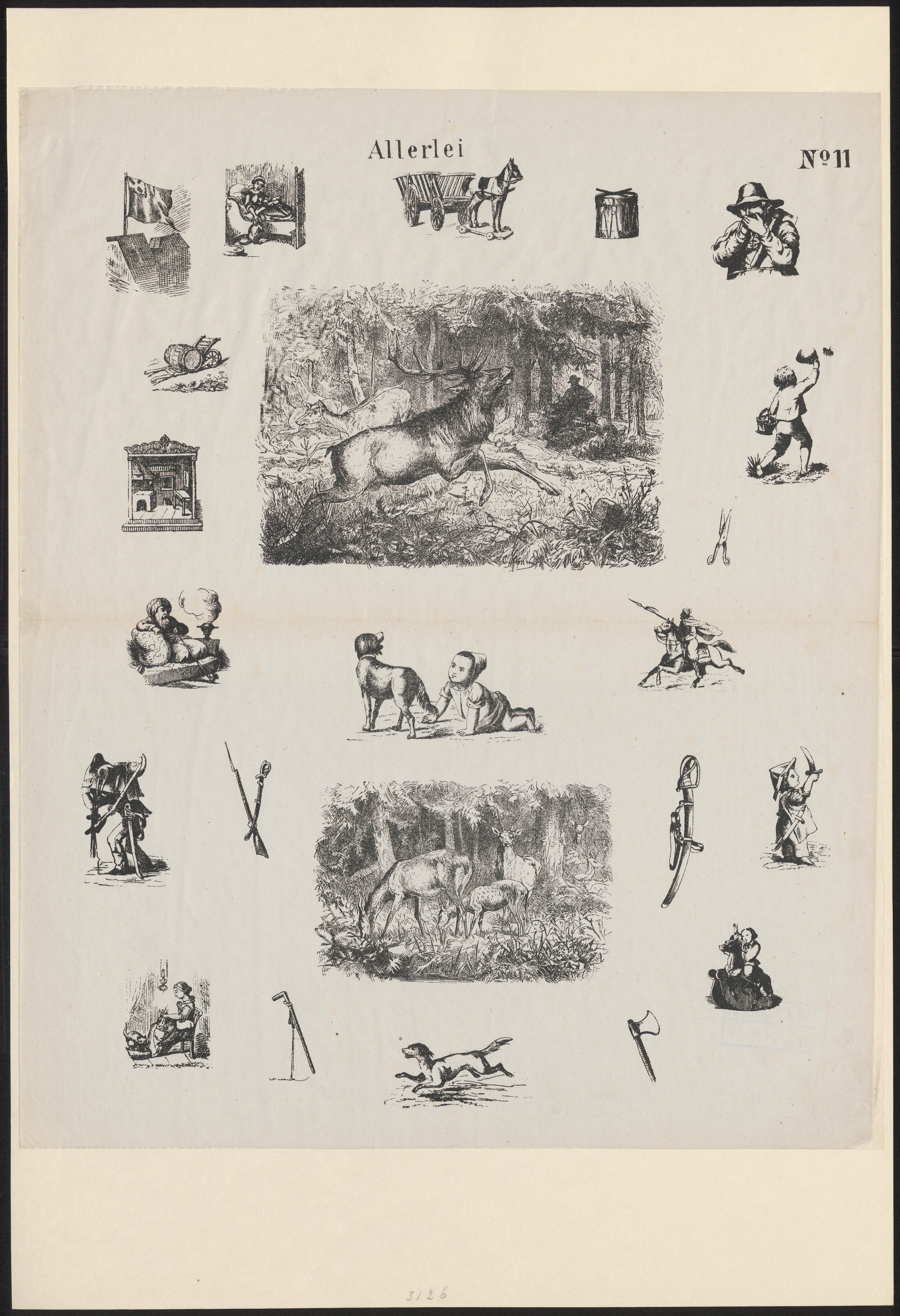 Prent met 23 afbeeldingen, gedrukt in lithografie. Op de prent staat geen uitgeversadres. Hij is toegeschreven aan De Ruyter & Meijer in Amsterdam.