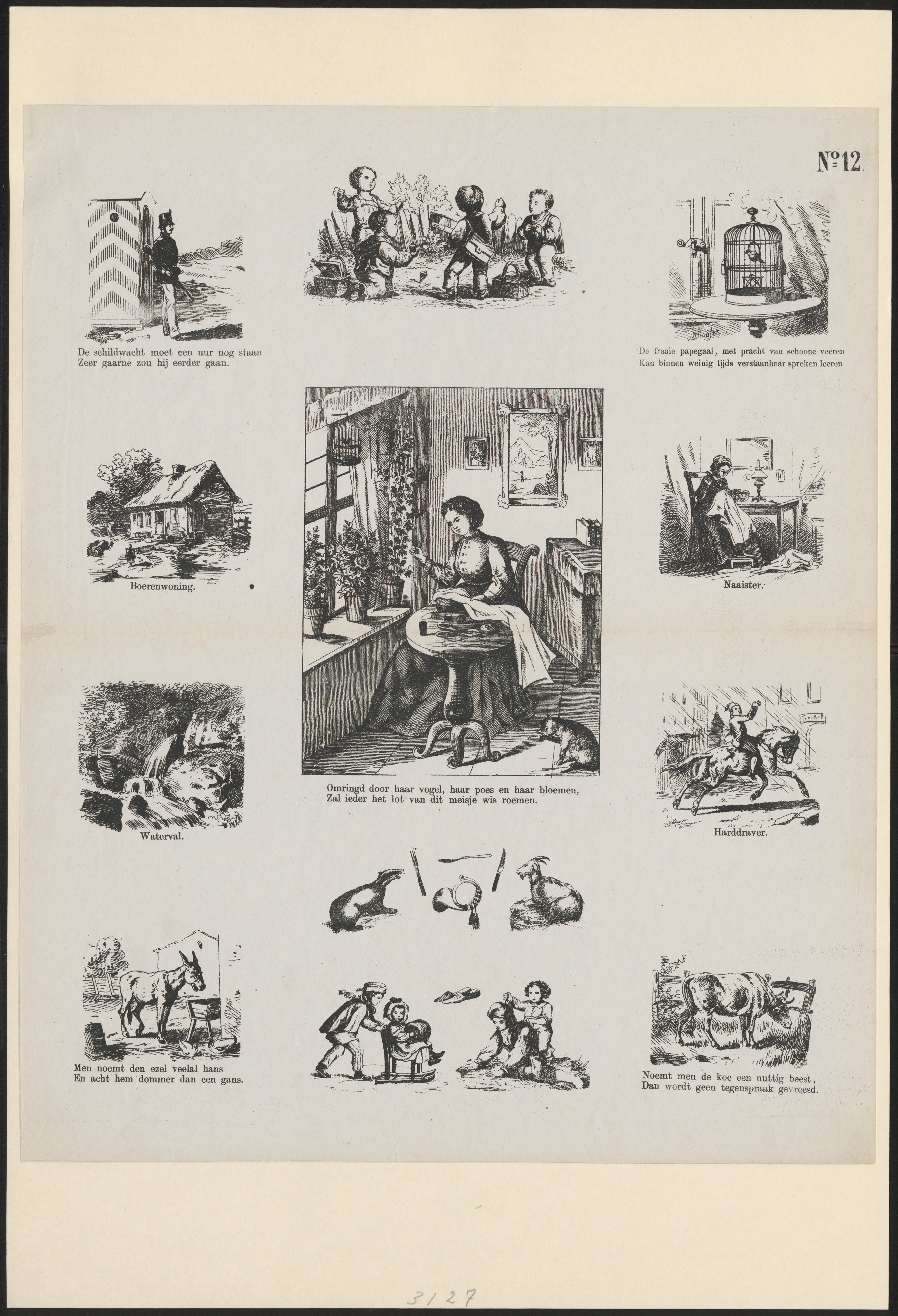 Prent met verschillende afbeeldingen, gedrukt in lithografie. Onder enkele afbeeldingen staat een onderschrift. De prent heeft geen titel. Op de prent staat geen uitgeversadres. Hij is toegeschreven aan De Ruyter & Meijer in Amsterdam.
