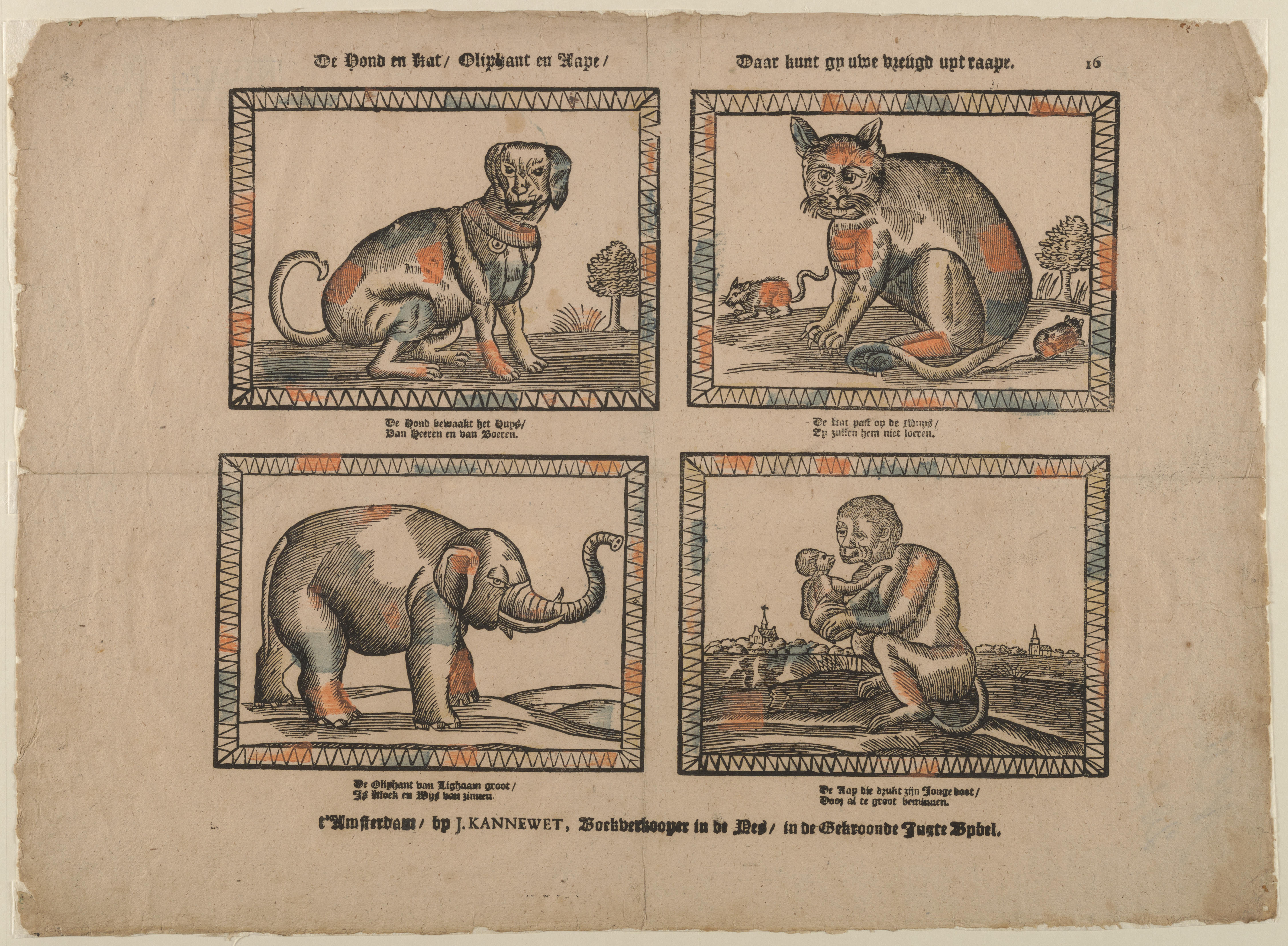 De Hond en Kat/ Oliphant en Aape/ Daar kunt gy uwe vreugd uyt raape. - 16