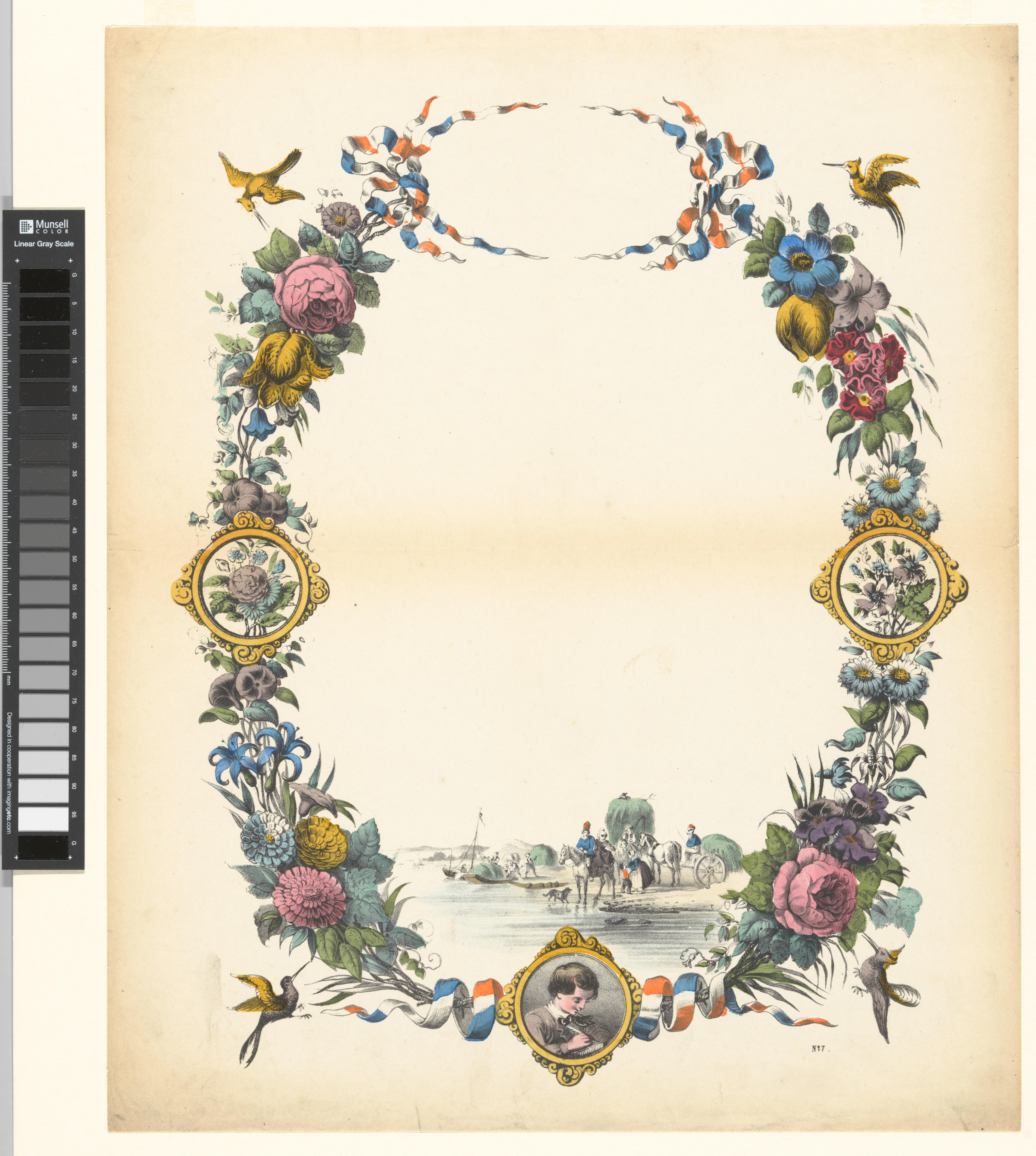 Blanco wenskaart met een voorgedrukte omlijsting. De kaart is van een dikker soort briefpapier. Dergelijke voorbedrukt papier werd ook gebruikt voor het schrijven van liefdesbrieven.