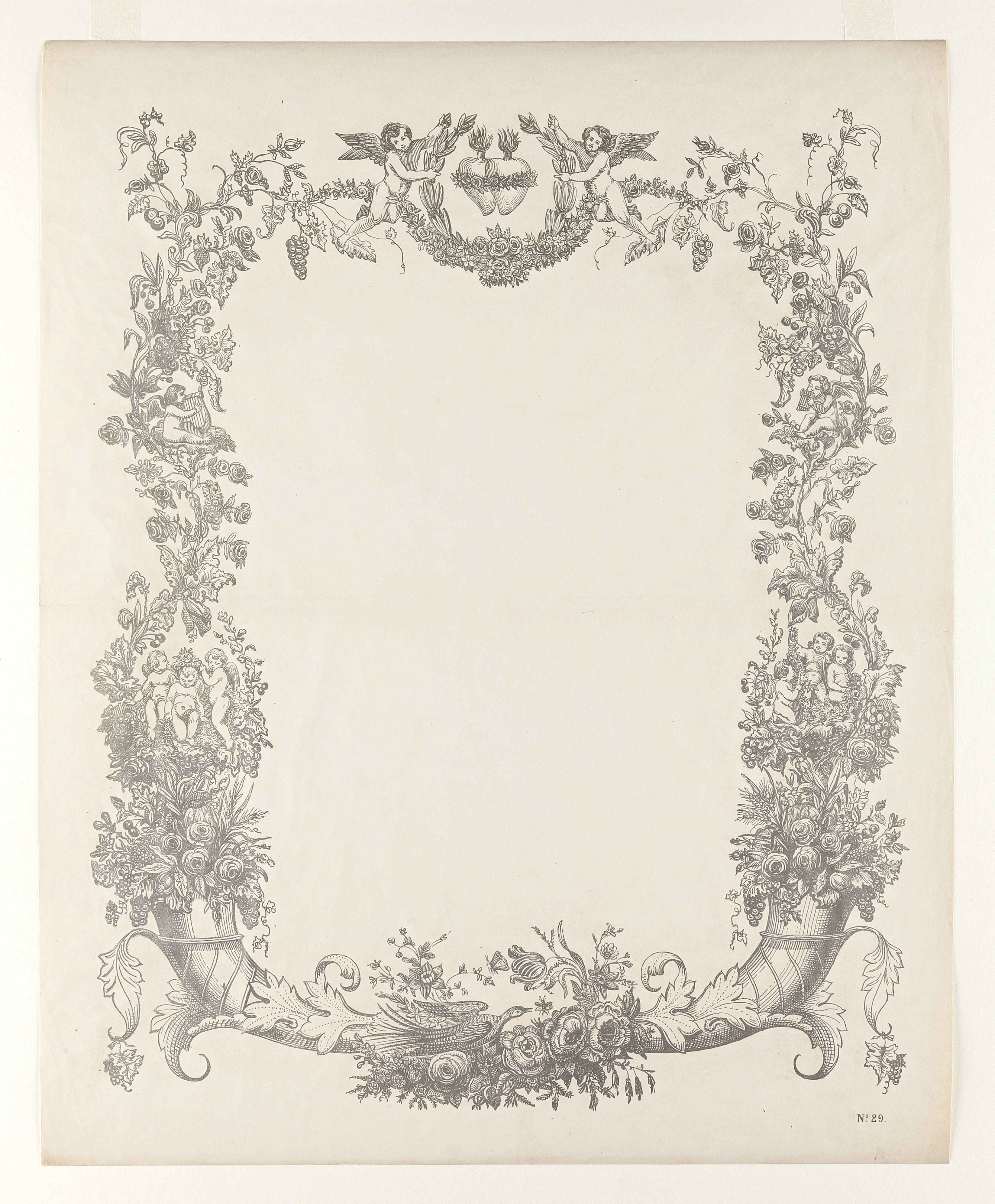 Blanco wenskaart met een voorgedrukte omlijsting. De kaart is van een dikker soort briefpapier. Dergelijke voorbedrukt papier is ook gebruikt voor het schrijven van liefdesbrieven.
