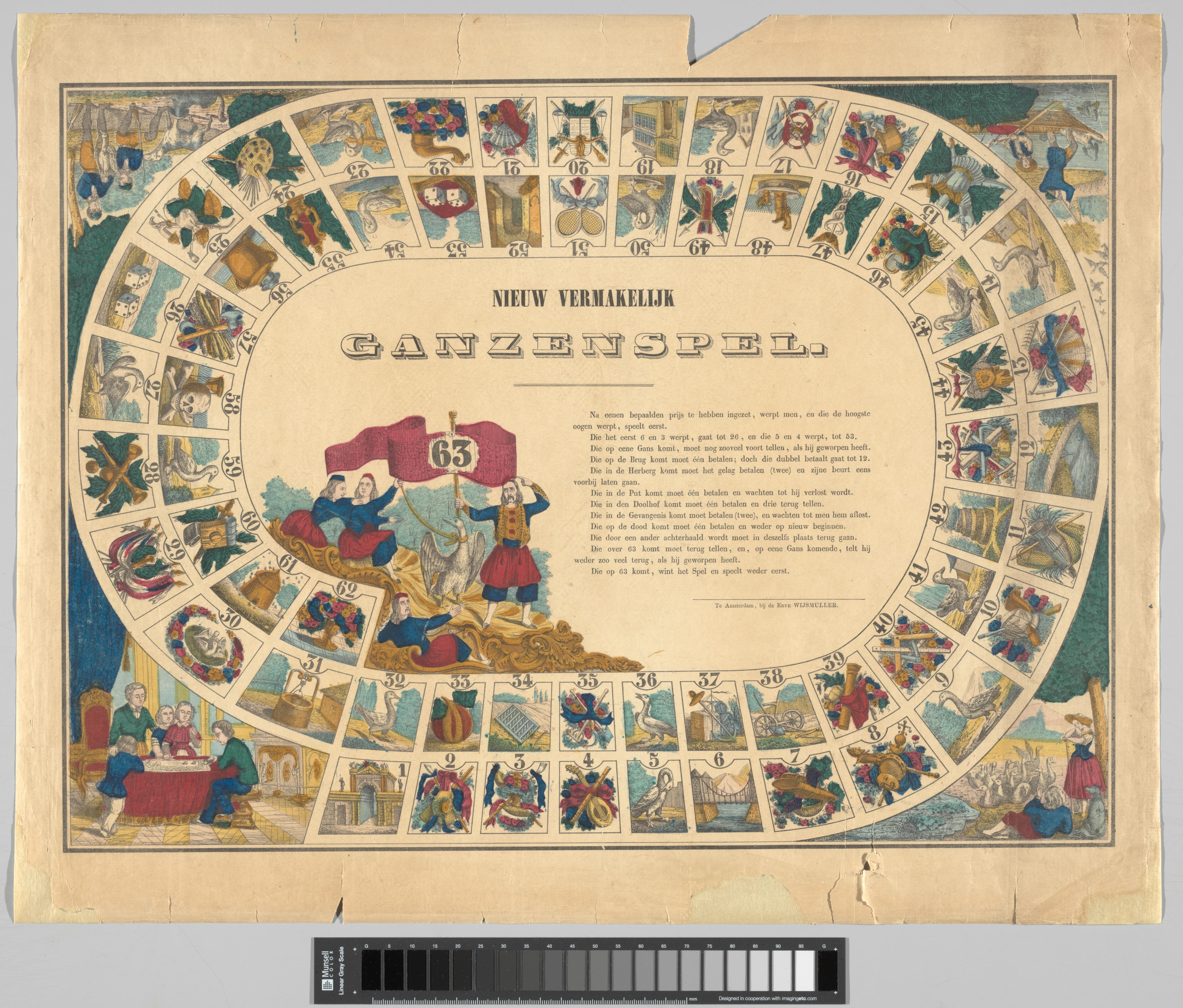 Bordspel 'Nieuw Vermakelijk Ganzenspel', Amsterdam, circa 1850