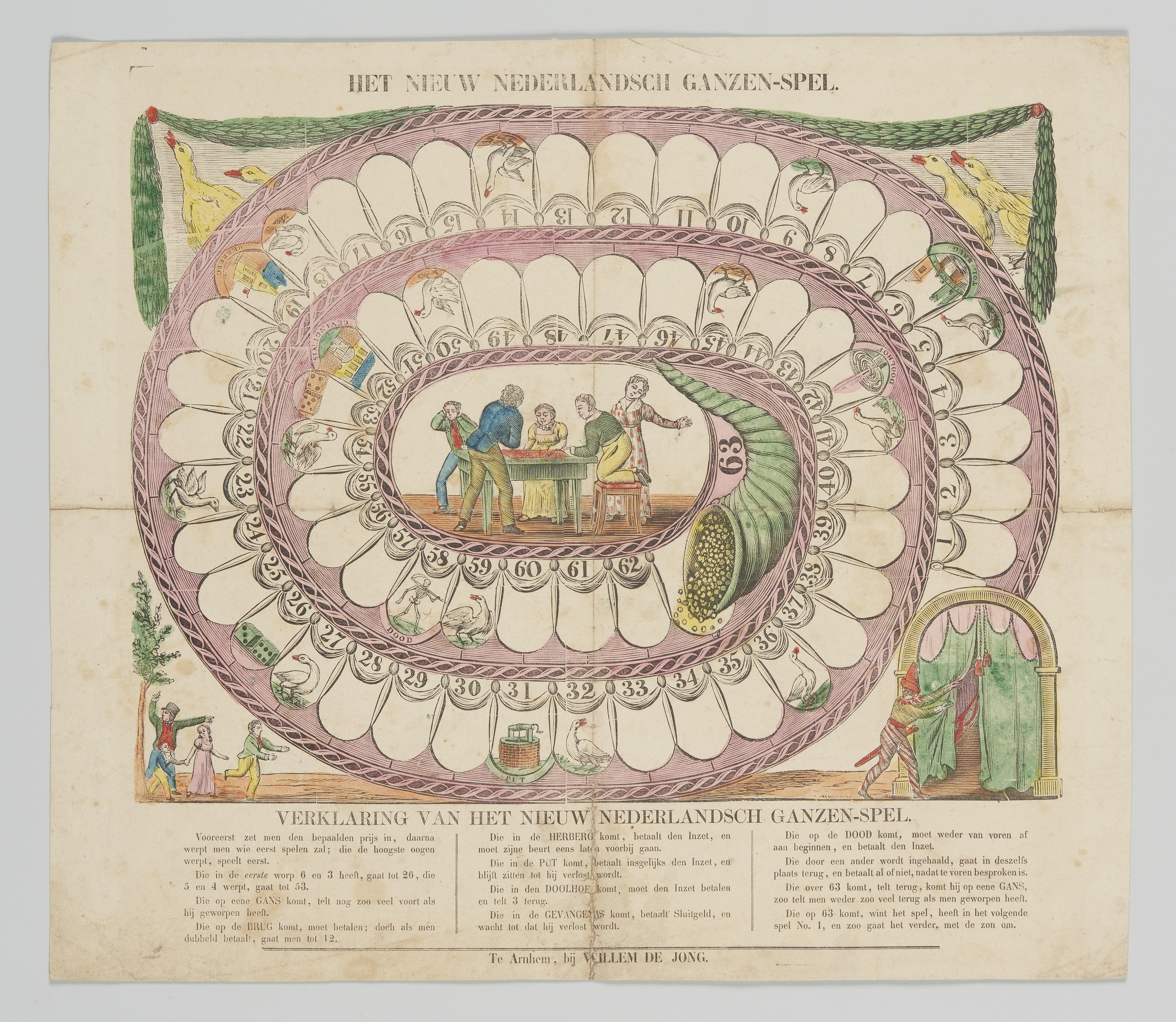 Bordspel 'Het Nieuw Nederlandsch Ganzen-Spel', Arnhem, circa 1874