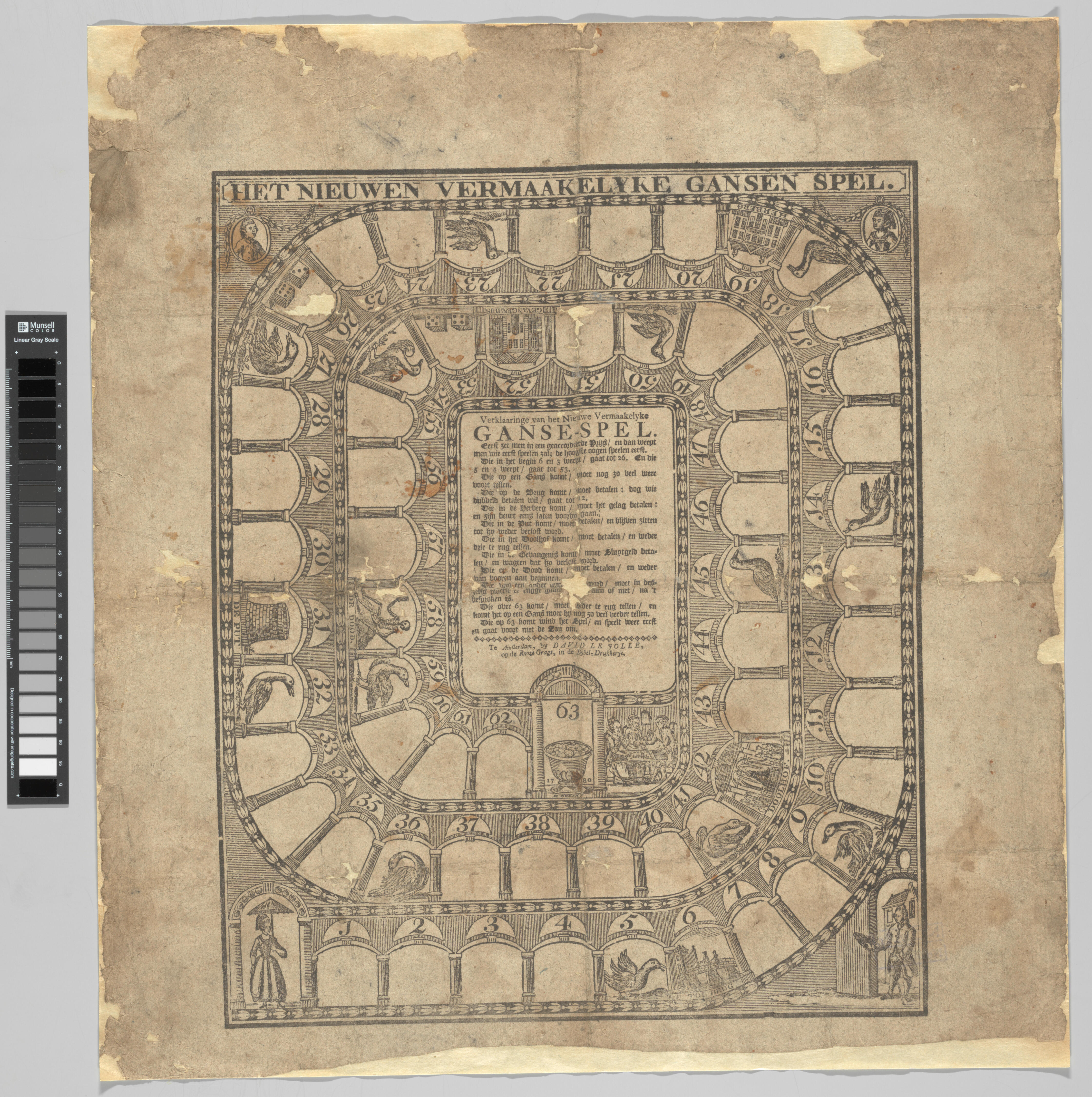Bordspel 'Het Nieuwen Vermaakelyke Gansen Spel', Amsterdam, 1780–1820