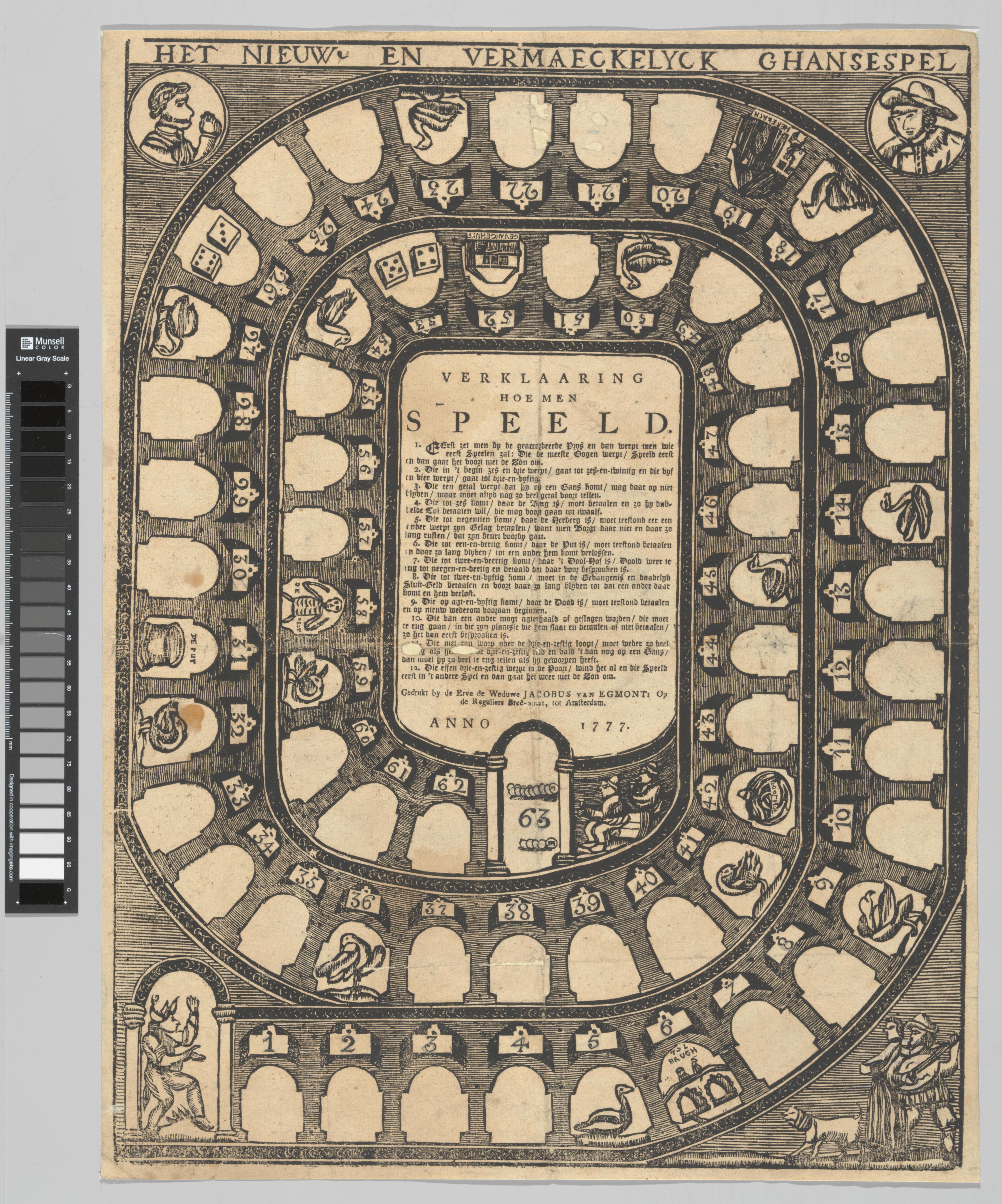 Bordspel 'Het Nieuw En Vermaeckelyck Ghansespel', Amsterdam, 1777