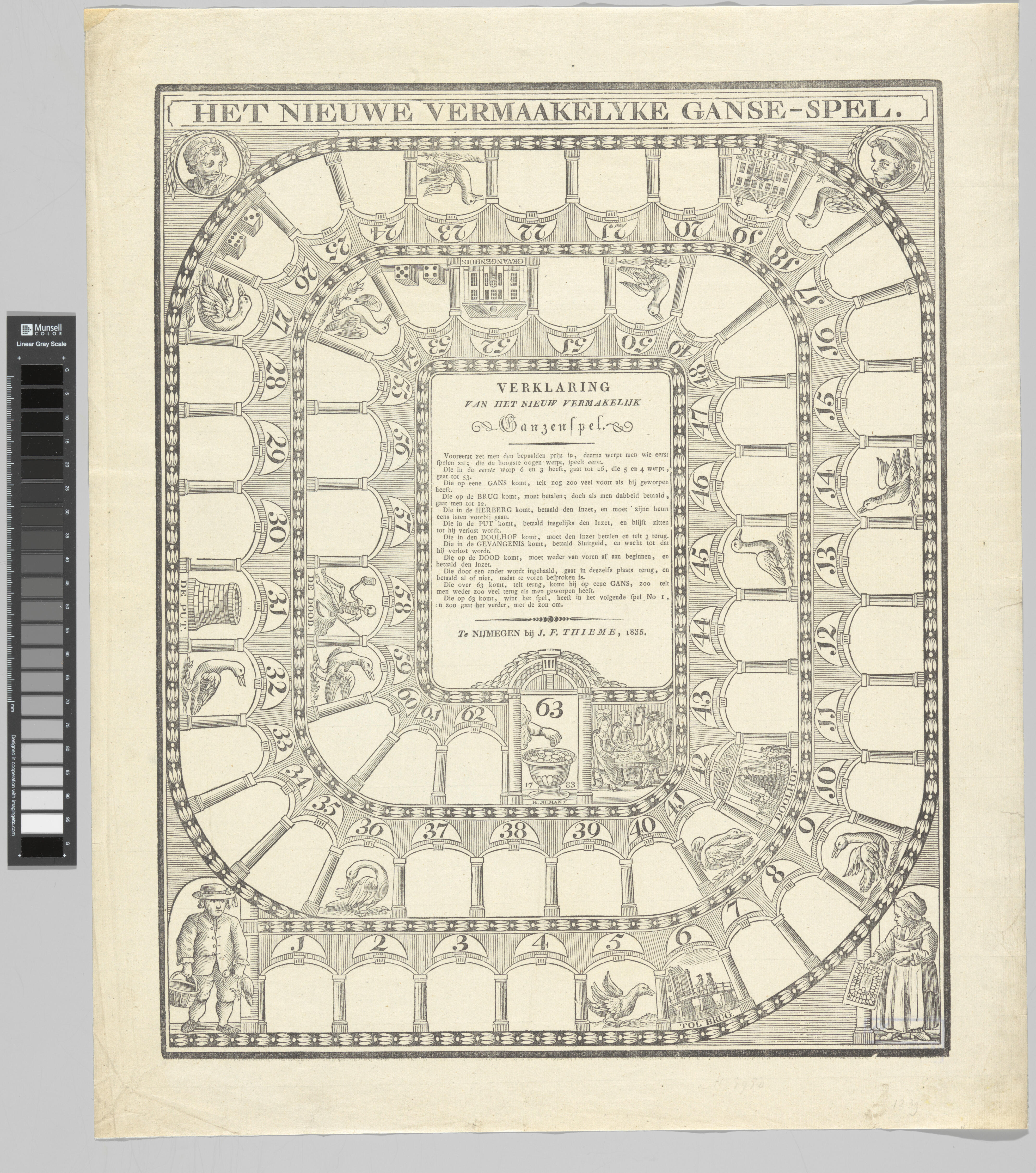 Bordspel 'Het Nieuwe Vermaaklyke Ganse-Spel', Nijmegen, 1835