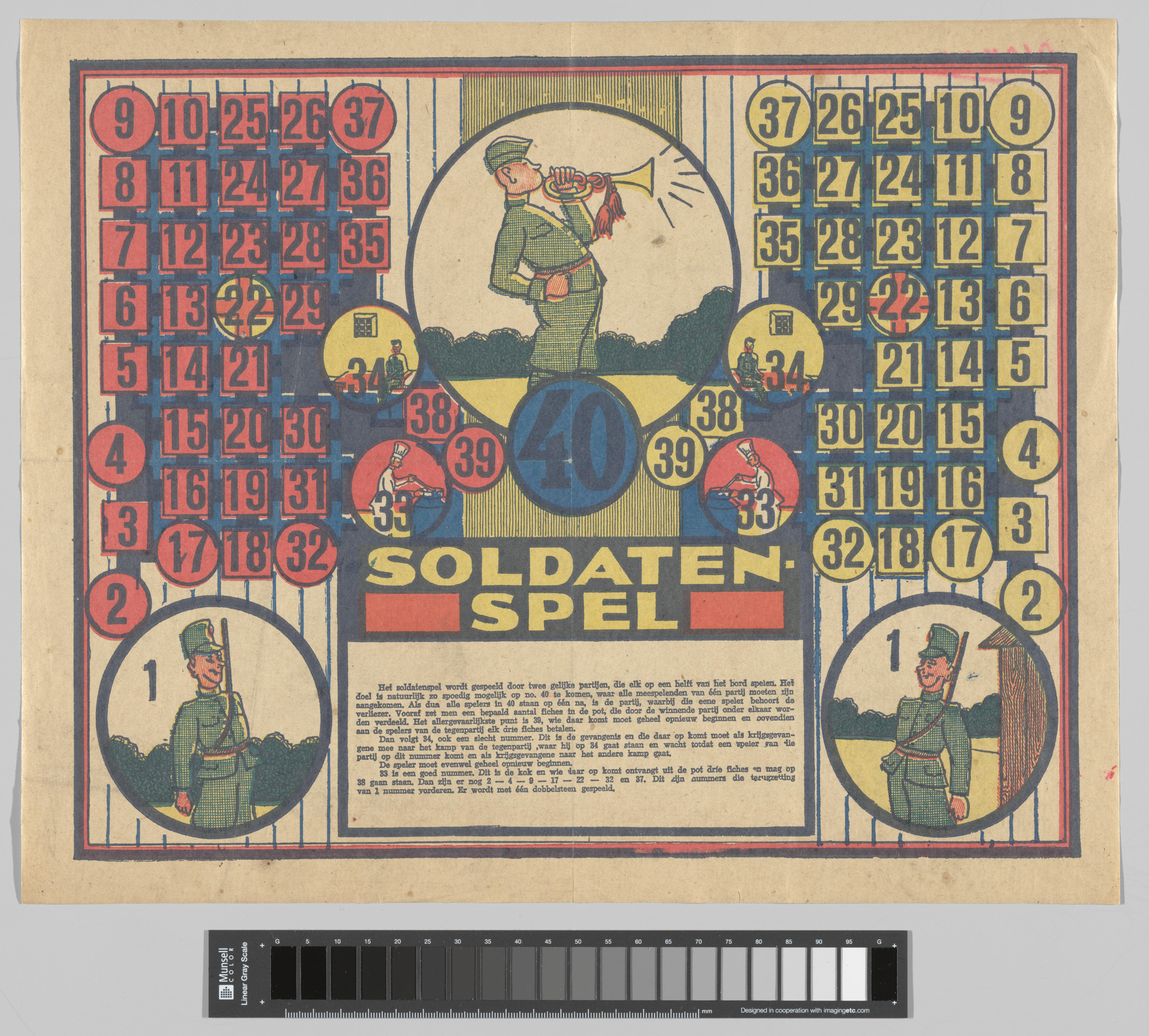 Bordspel met 39 speelvakken aan beide kanten van het speelbord. In het midden is een vak 40. Twee partijen beginnen elk op een helft te spelen. Wie als eerste op vak 40 komt, wint de pot.