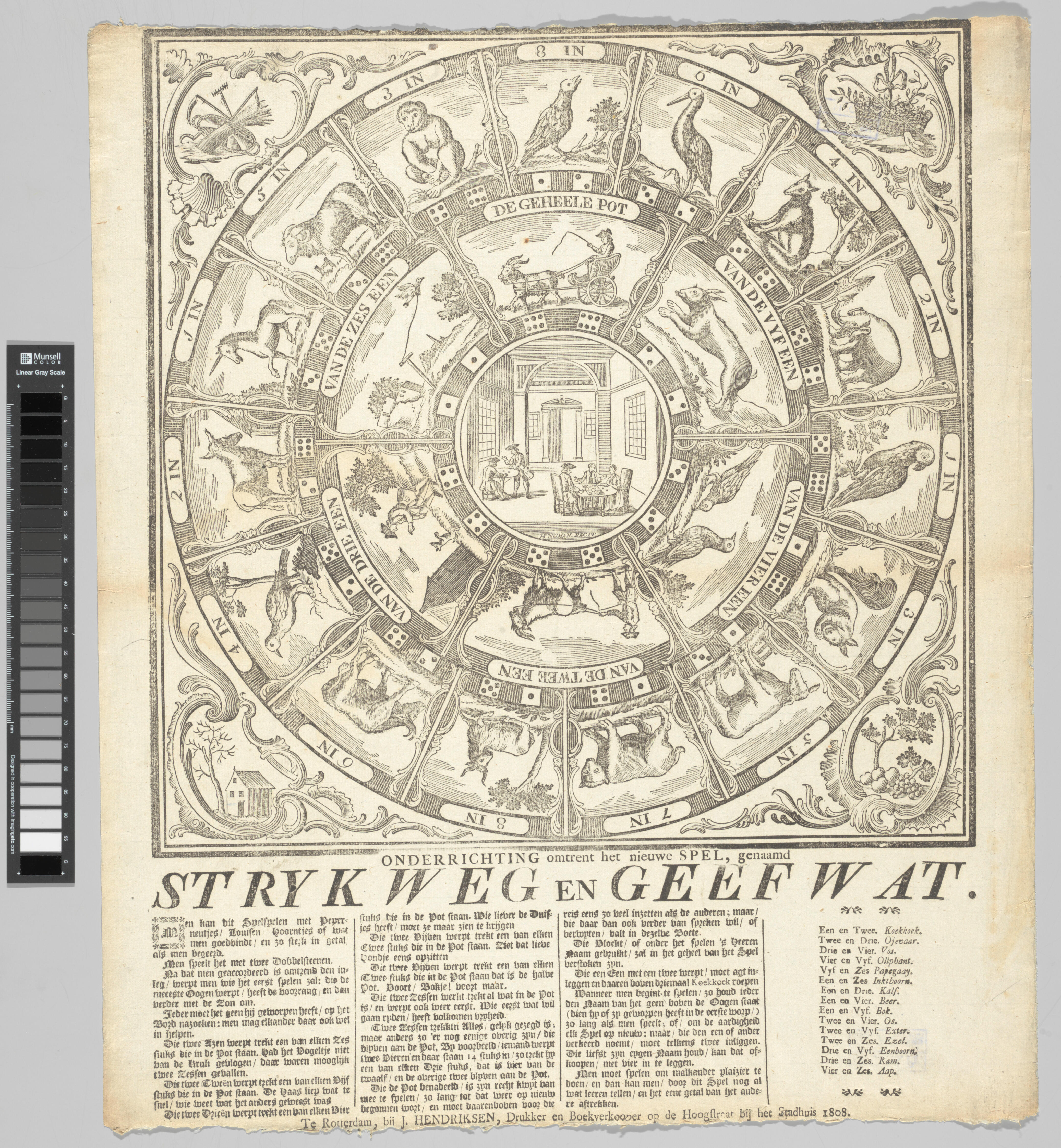 Bordspel 'Stryk Weg en Geef Wat', Rotterdam, circa 1808