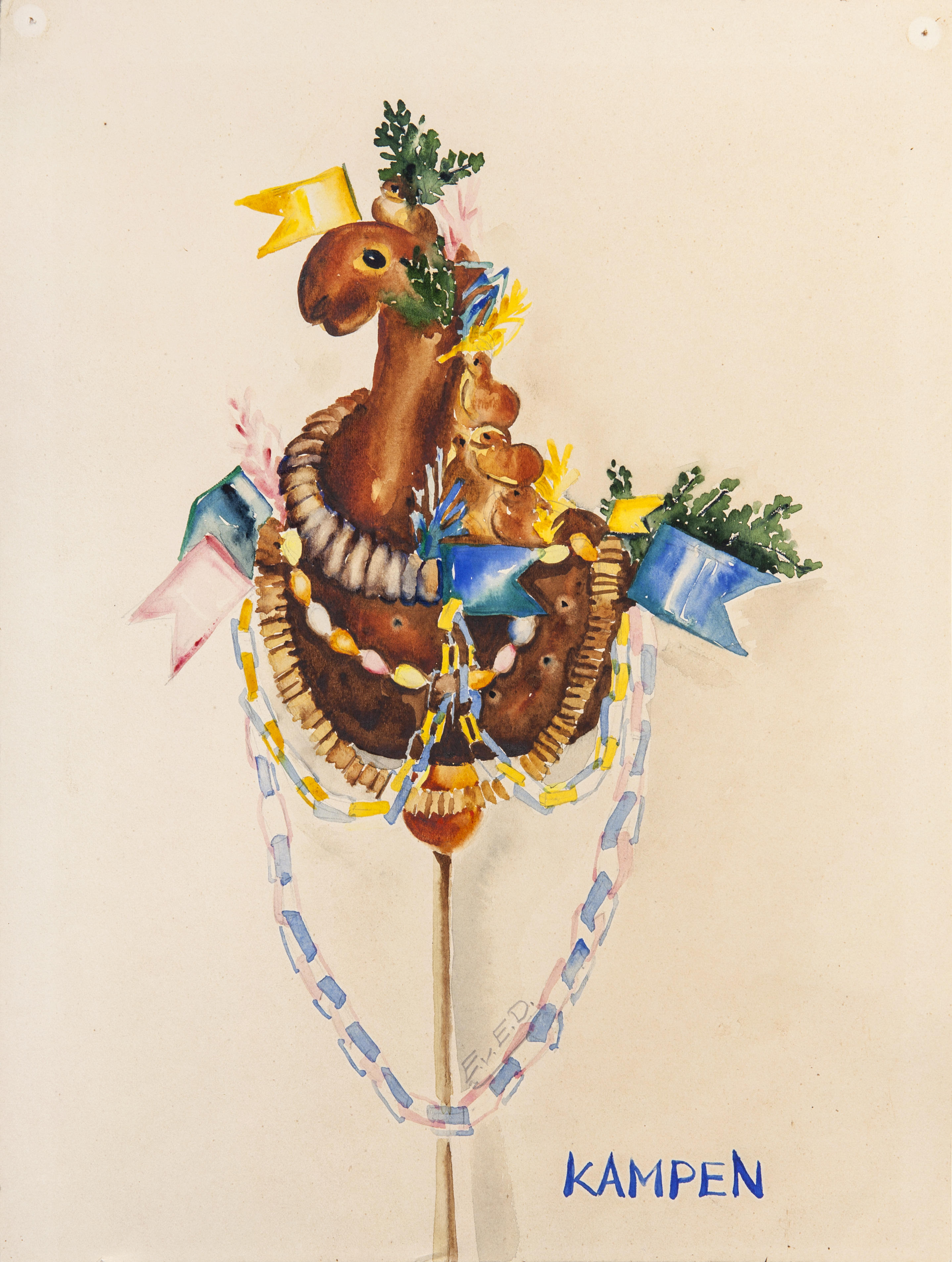 In het voorjaar van 1935 organiseerde het Nederlands Openluchtmuseum een tentoonstelling van palmpaastakken of -stokken onder de titel ‘Palmpaasch in het Nederlandsch Openluchtmuseum’. Na afloop van de tentoonstelling werden de palmpaastakken in de museumcollectie opgenomen. De versiering van de takken was vervaardigd van weinig duurzaam materiaal, zoals brood en papier, waardoor er niet één bewaard ...