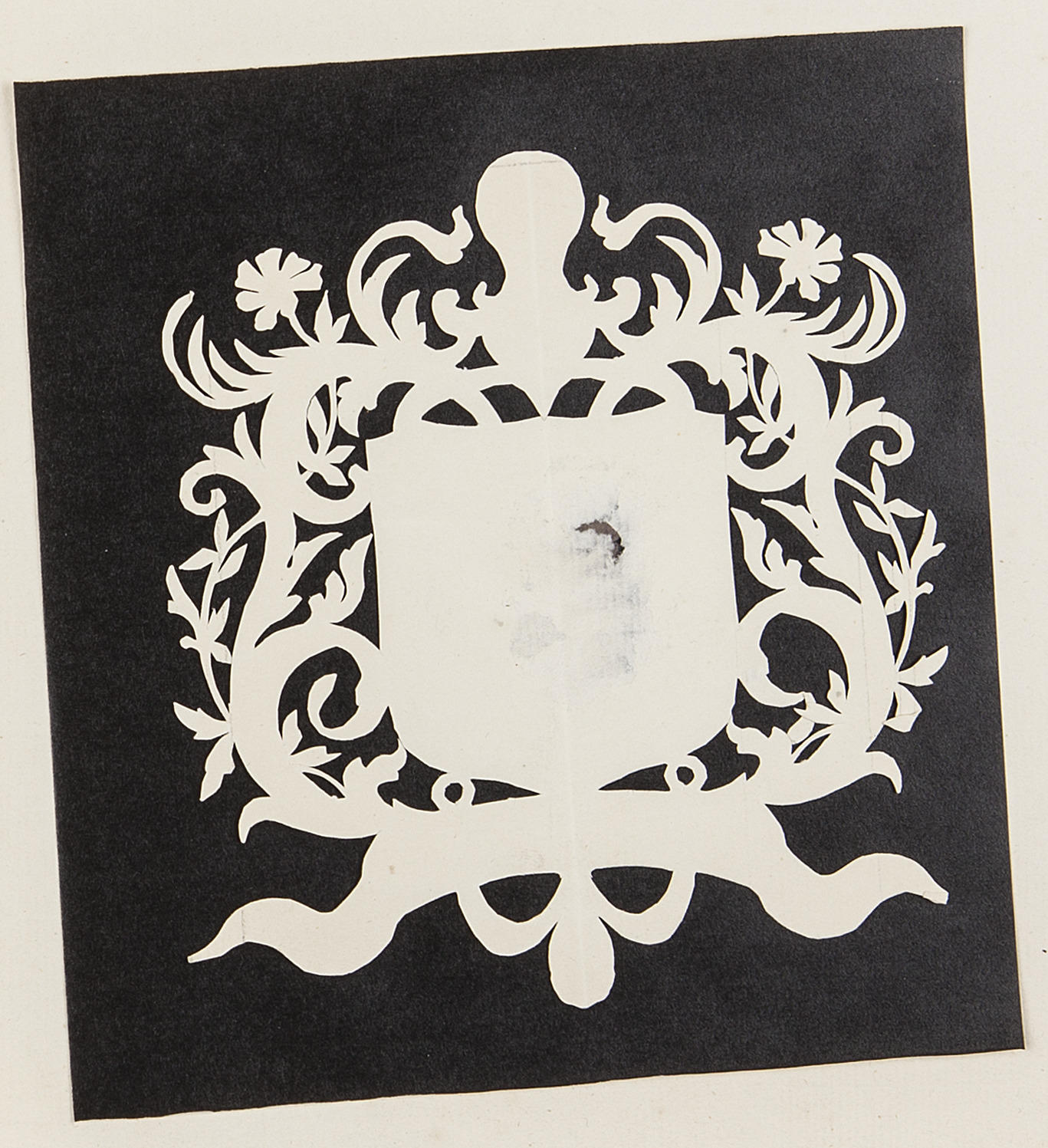 Symmetrisch wapen met helmteken. Het knipsel is onaf in het album geplakt.