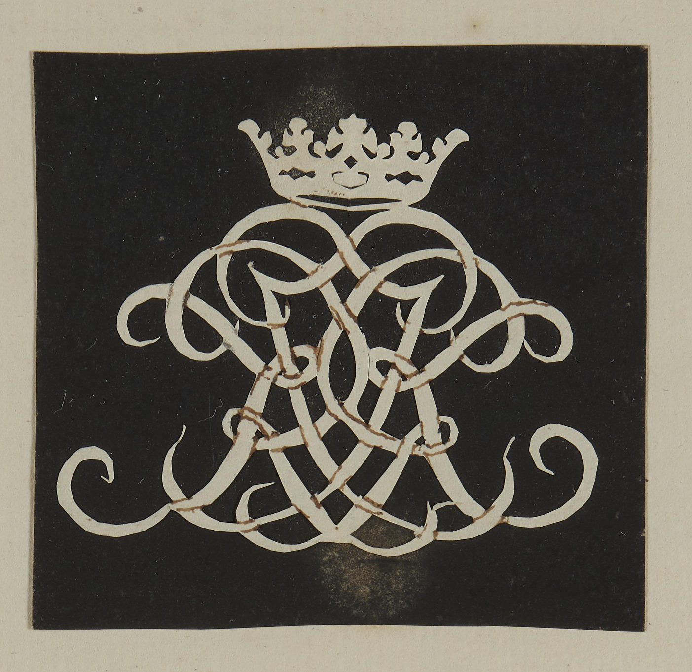 Knipsel van een gekroond spiegelmonogram.