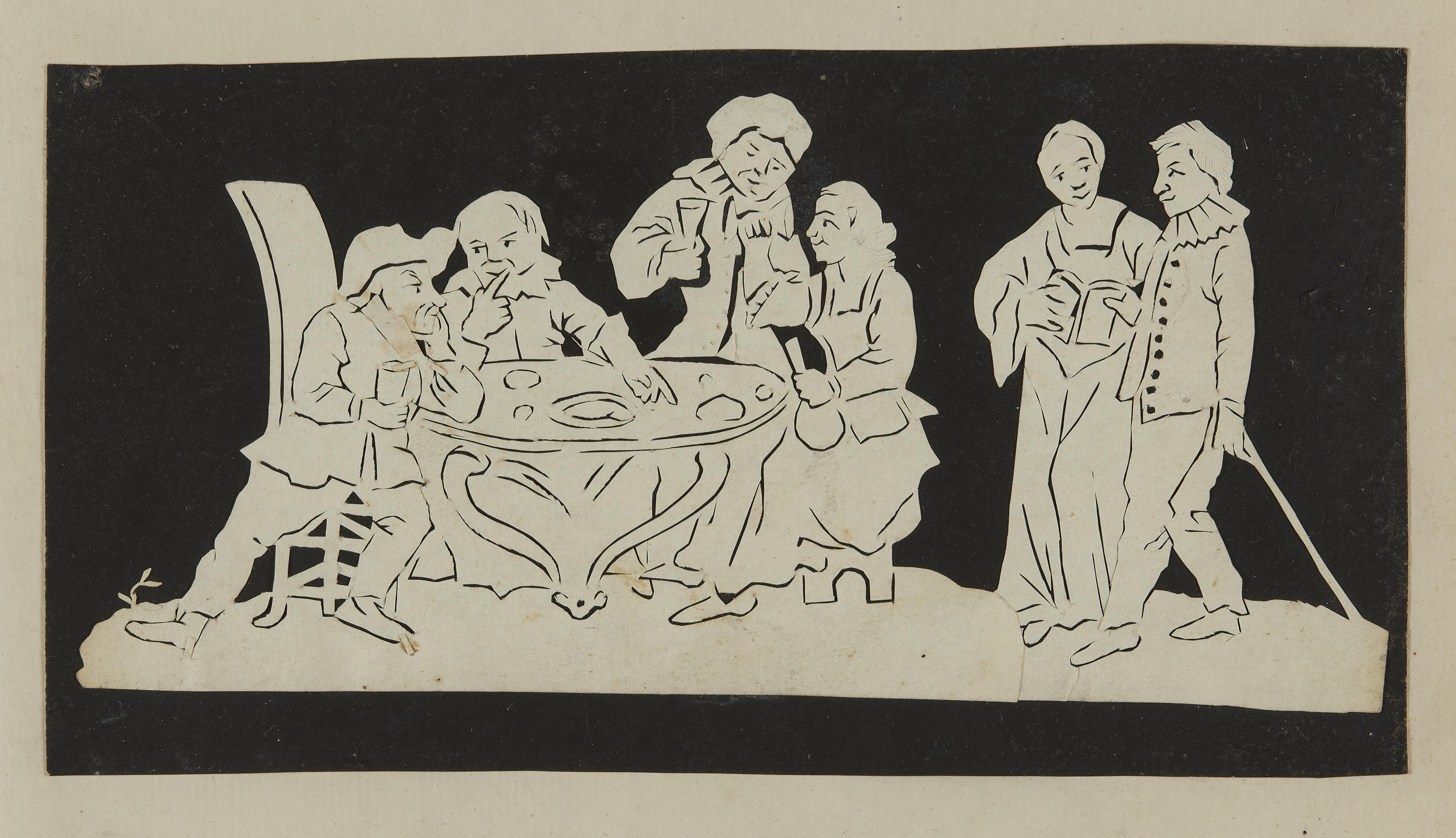 Mannen en vrouwen rond een salontafel, 1734–1780