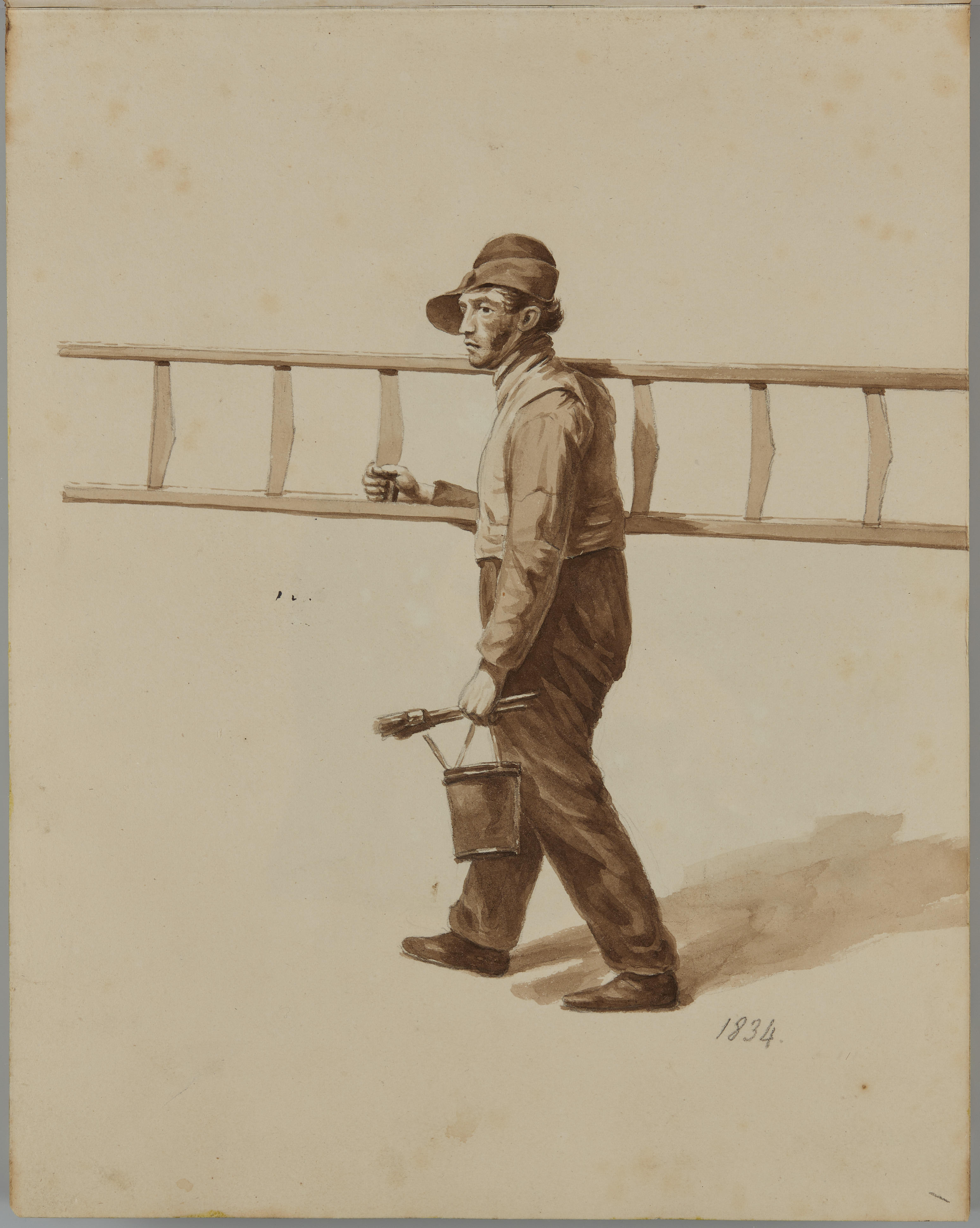 Tekening van een schilder met ladder, 1834