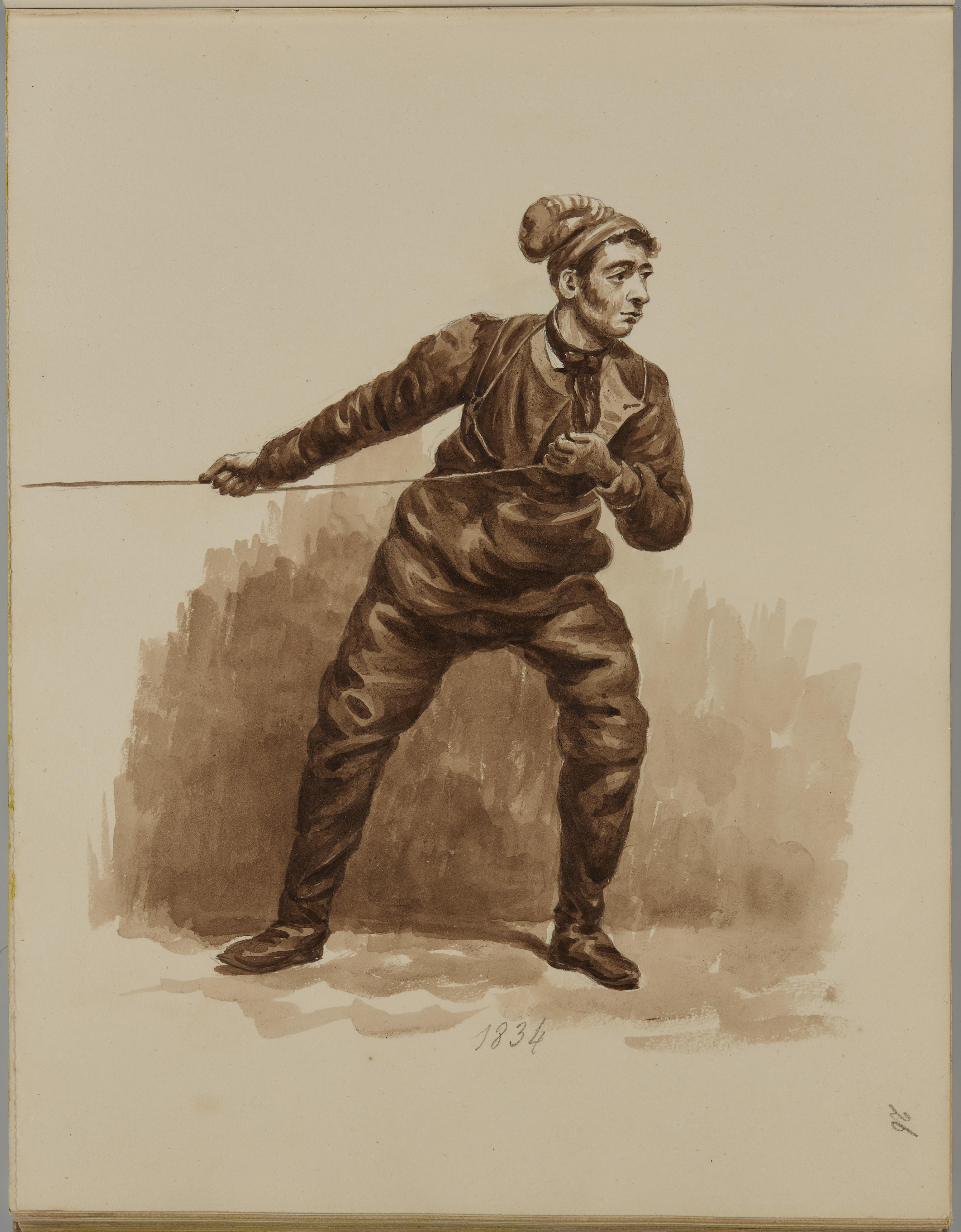 Tekening van een touwtrekkende man, 1834