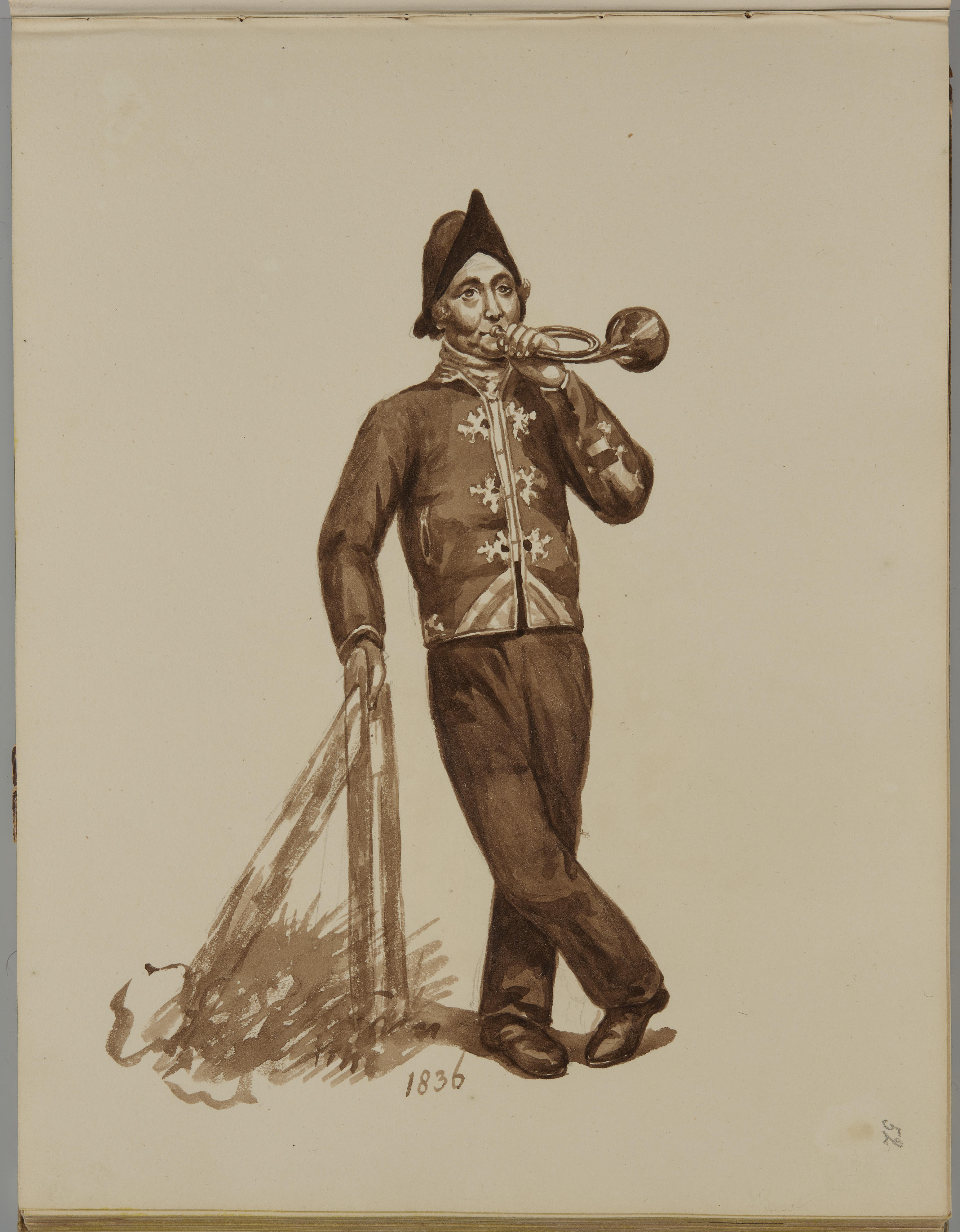Tekening van een hoornblazende militair, 1836