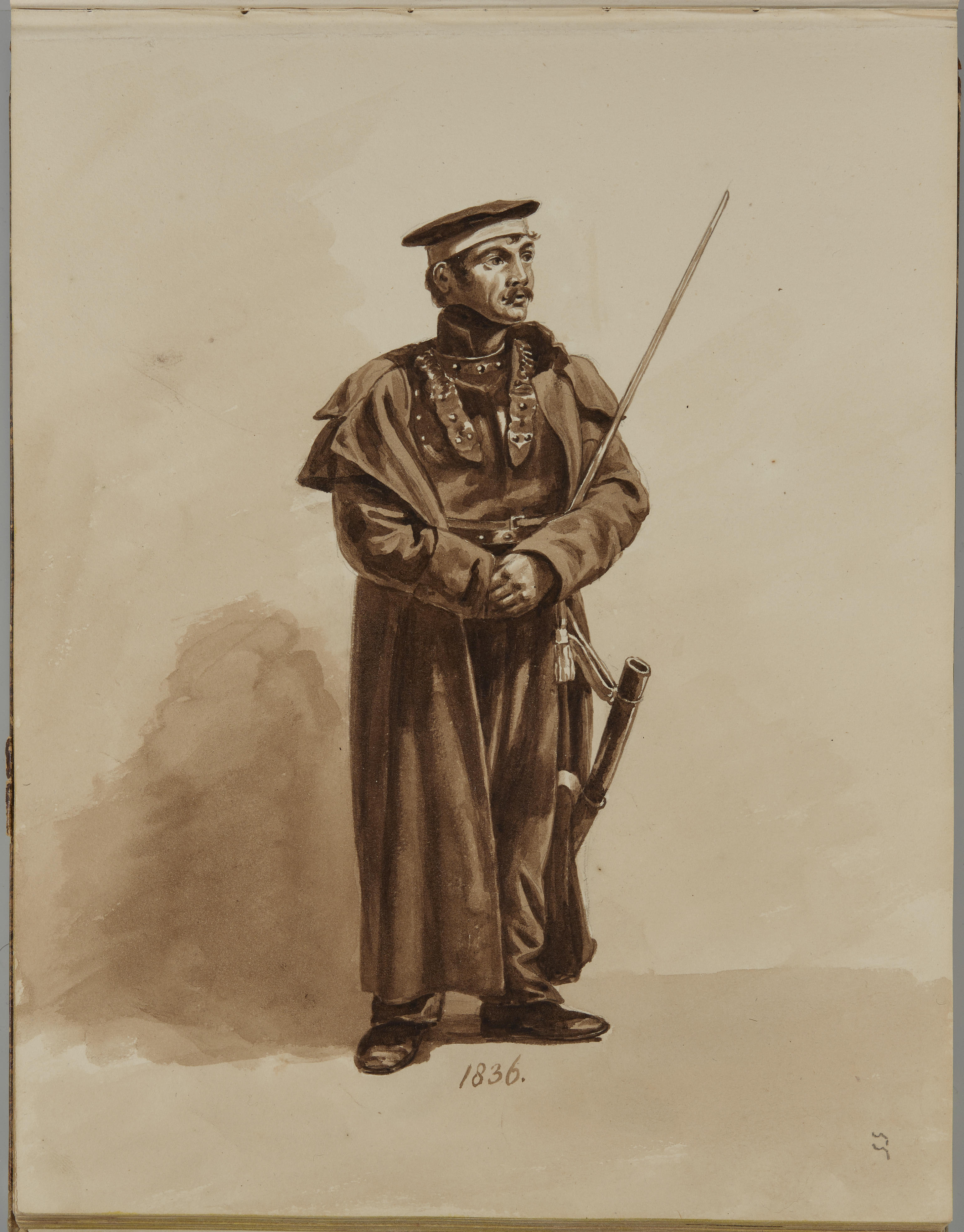 Tekening van een militair met een sabel, 1836