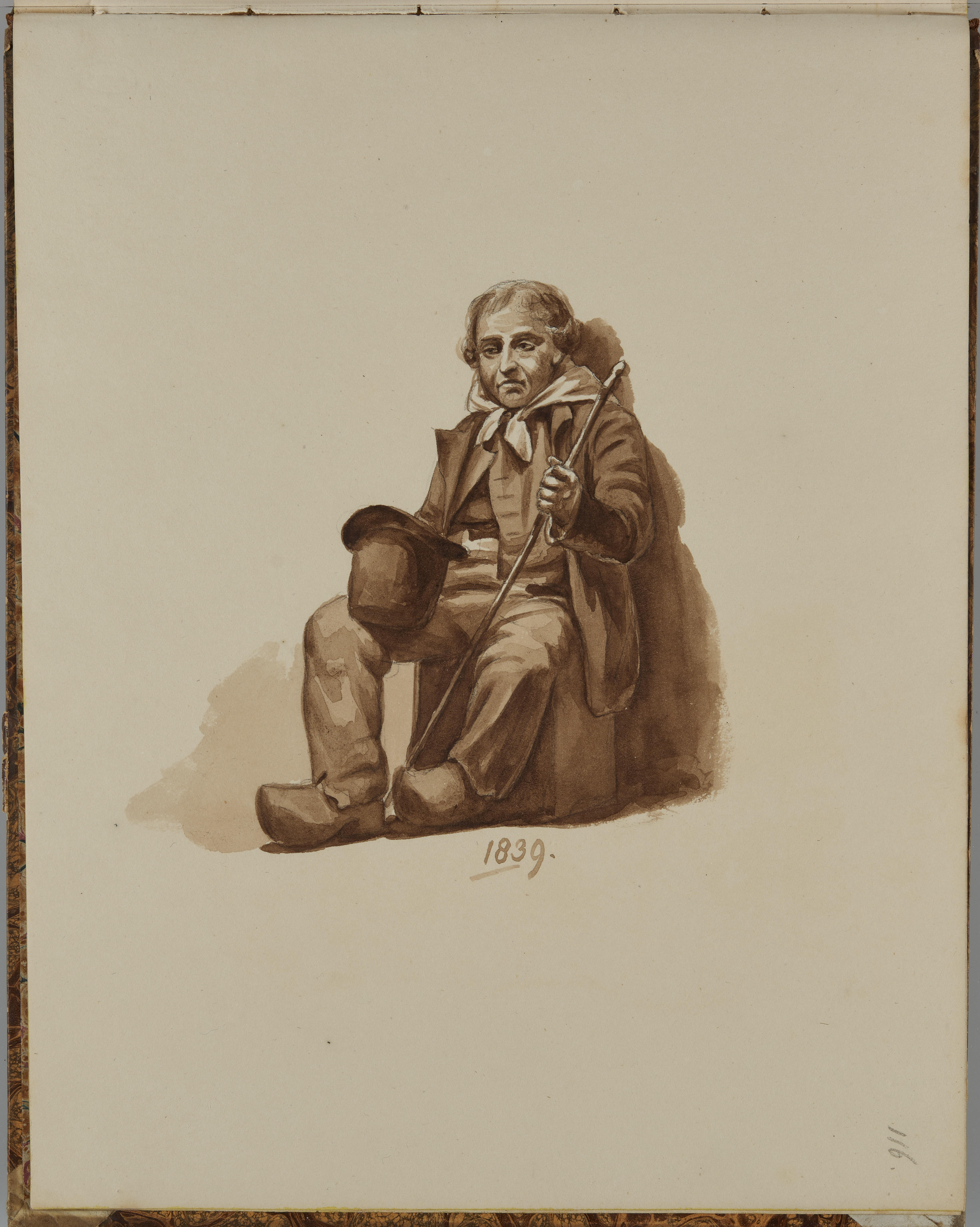 Tekening van een man met een wandelstok, 1839