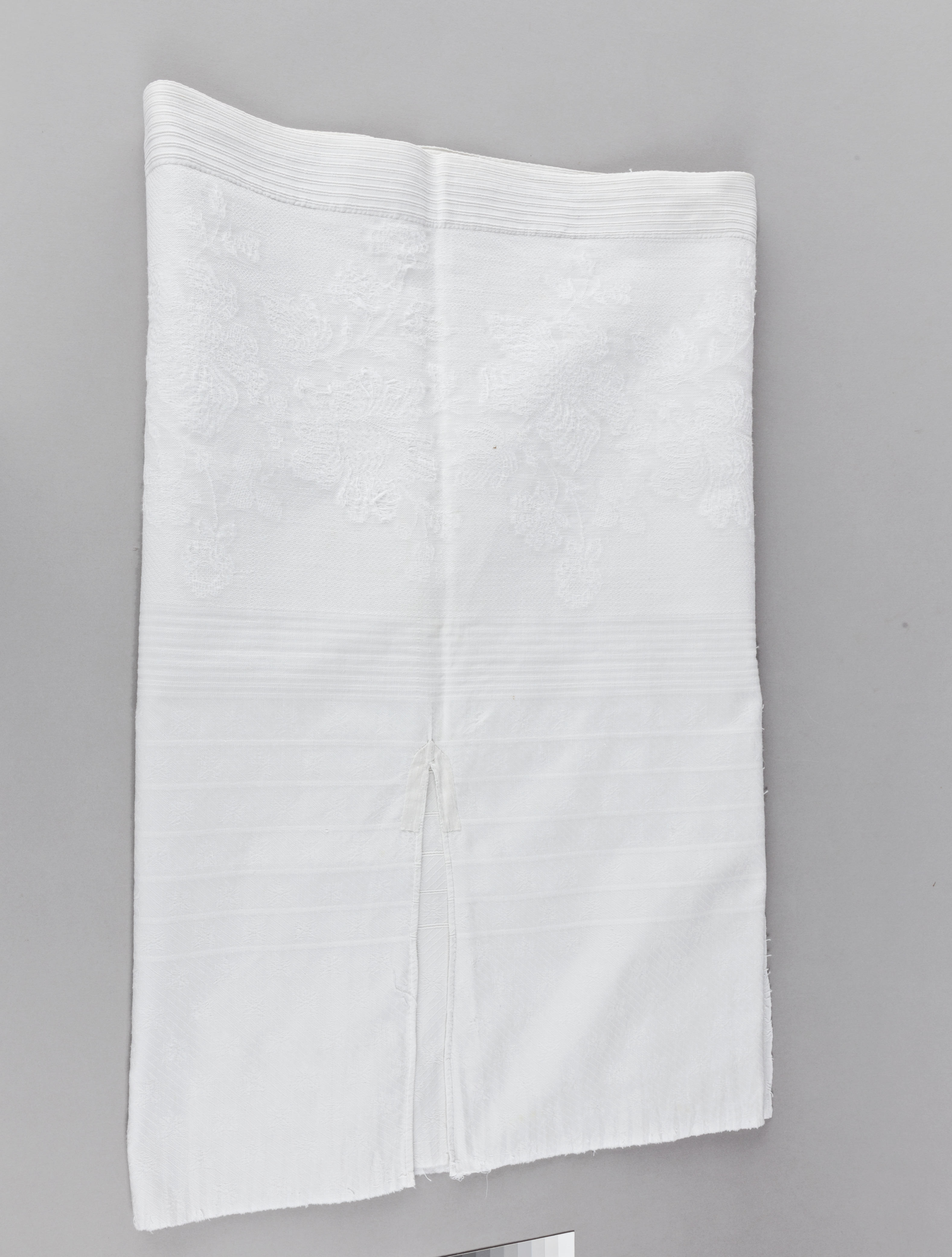 Fragment van een onderrok van machinaal stikwerk. De weefbreedte is 132 centimeter.