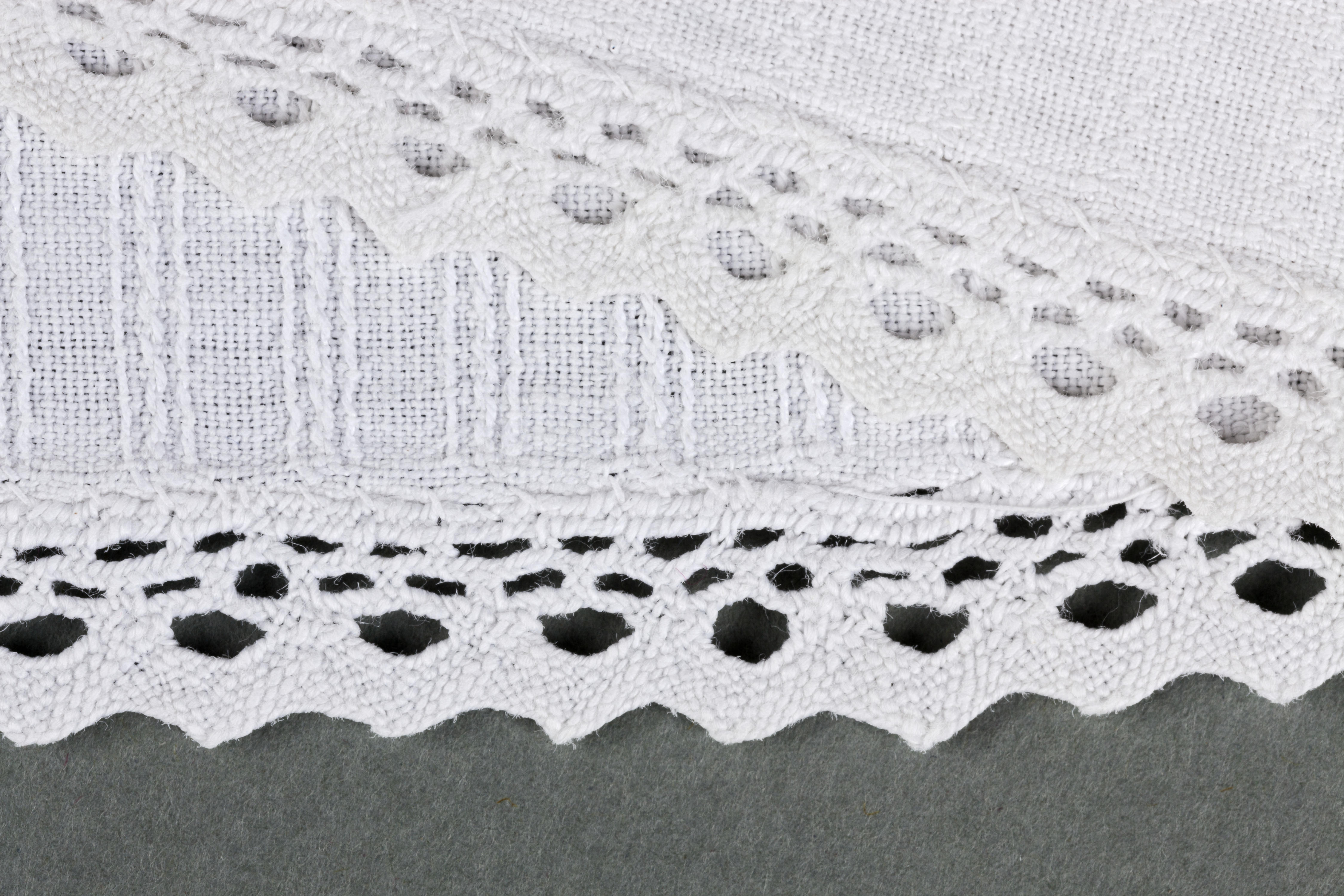Achterstrook van een ondermuts uit Noord-Nederland. De achterstrook bestaat uit een strook langetband van vijf centimeter breed, aan de onderzijde voorzien van een machinaal kantje van één centimeter breed. Het langetband is in model gemaakt door in de bovenrand twee plooien te naaien en aan de onderrand een stukje dubbel te slaan.