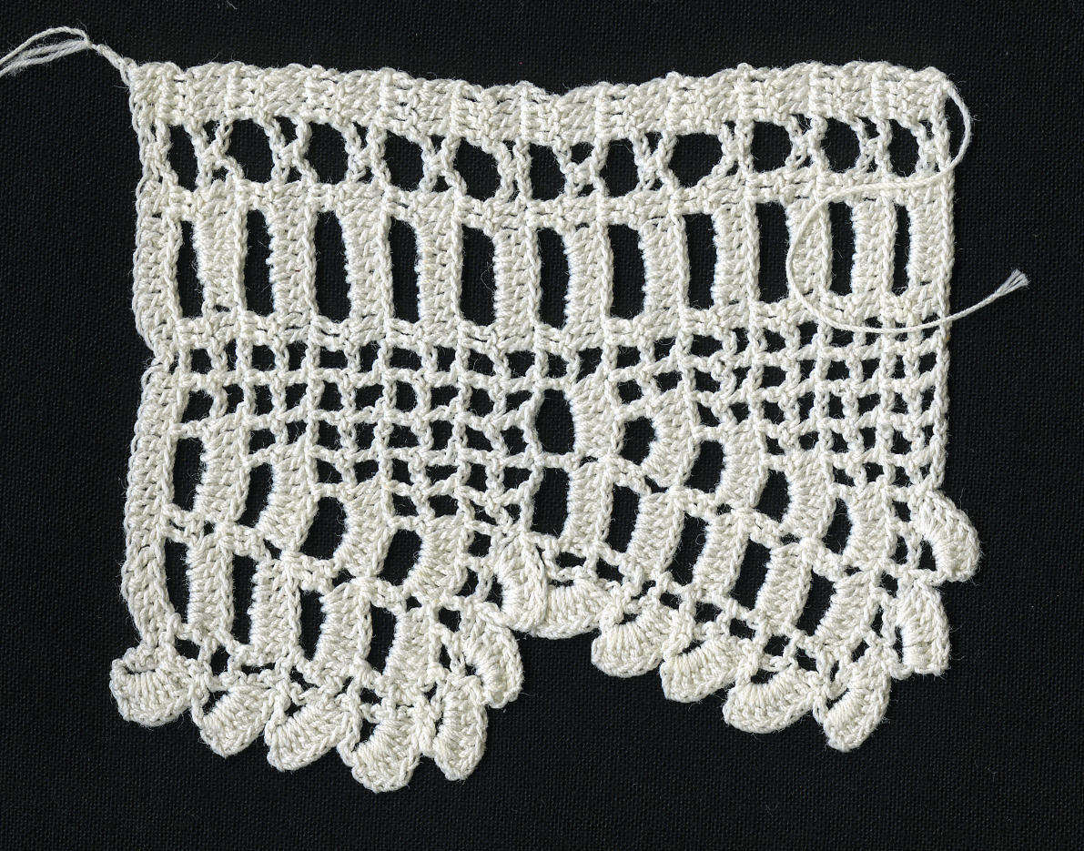 Oefenstuk, waarschijnlijk gehaakt als proeflapje voor een afwerking van interieurtextiel.