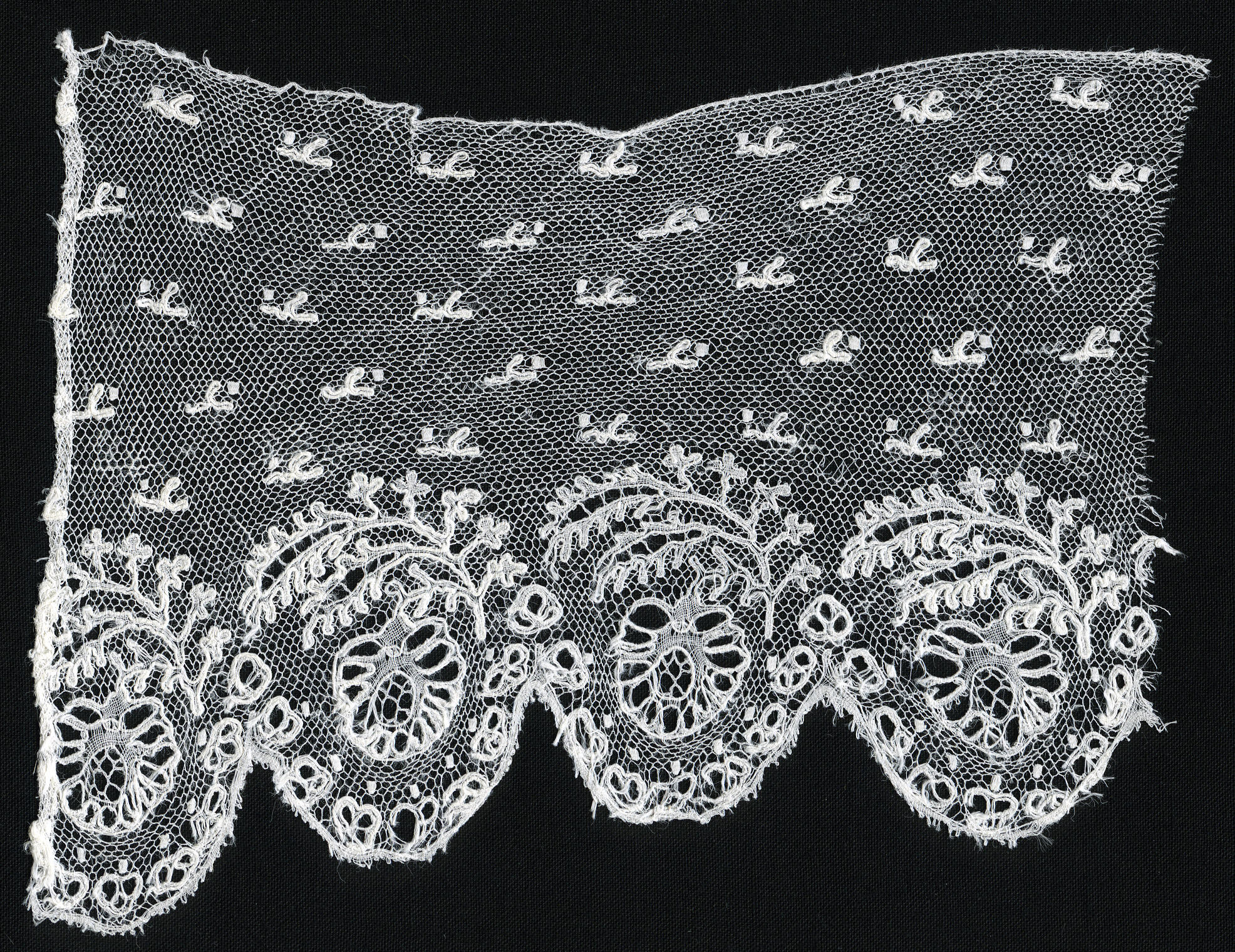 Rijselse kloskant met geschulpte rand, uit het tweede kwart van de negentiende eeuw. Het patroon dateert waarschijnlijk van omstreeks 1830.