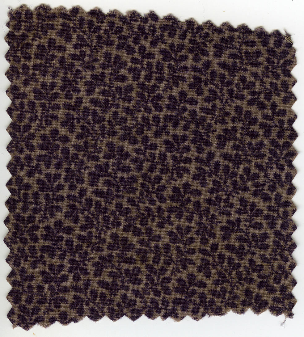 Gedessineerde katoen met een paars fond, bedrukt met paarse motieven. Fragment van een kraplap voor de rouw uit Spakenburg. Een kraplap van deze stof kan gedragen worden bij de 'vierljaarsrouw'.