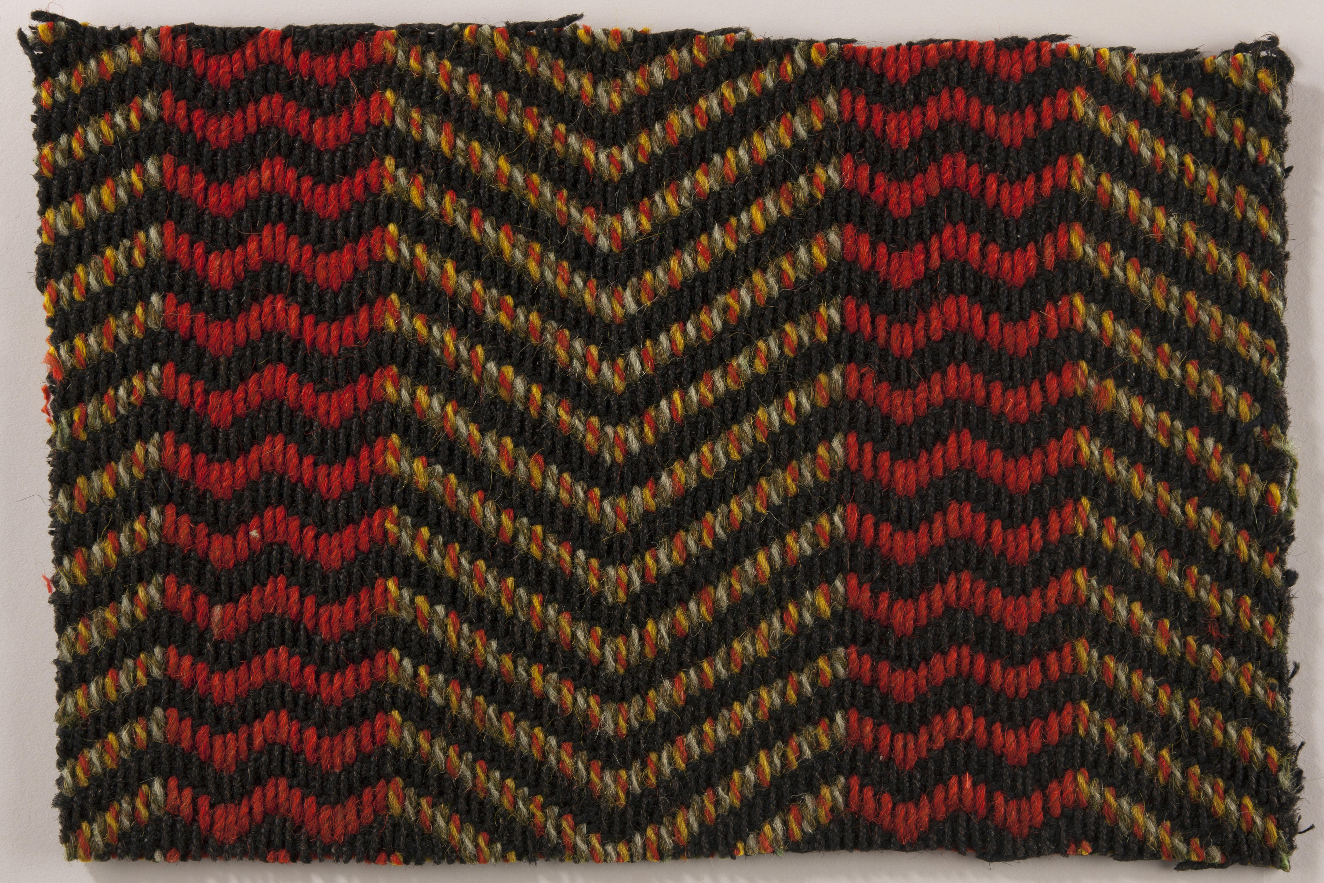 Fragment van een koeharen vloerkleed, afkomstig uit Middelharnis. Koeharen kleden werden vervaardigd vanaf het midden van de achttiende eeuw tot in het begin van de twintigste eeuw. Tapijten en kleden van koehaar waren goedkoop, omdat het benodigde materiaal relatief goedkoop ingekocht kon worden. Het koehaar kwam behalve uit Nederland ook uit Duitsland en Scandinavië. Door ...