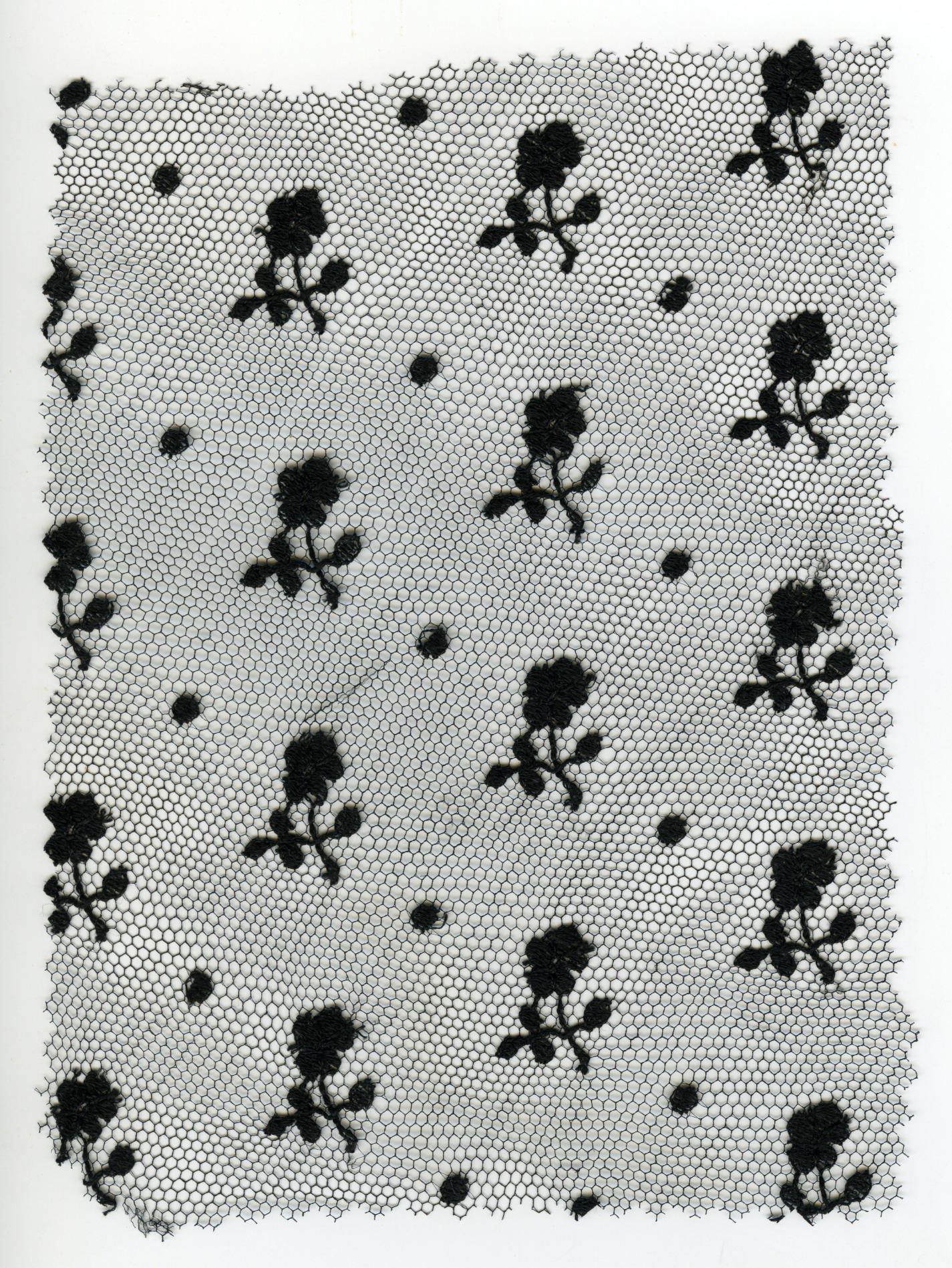 Machinaal geborduurde tule, onder meer gebruikt voor de garnering van modejaponnen en accessoires.