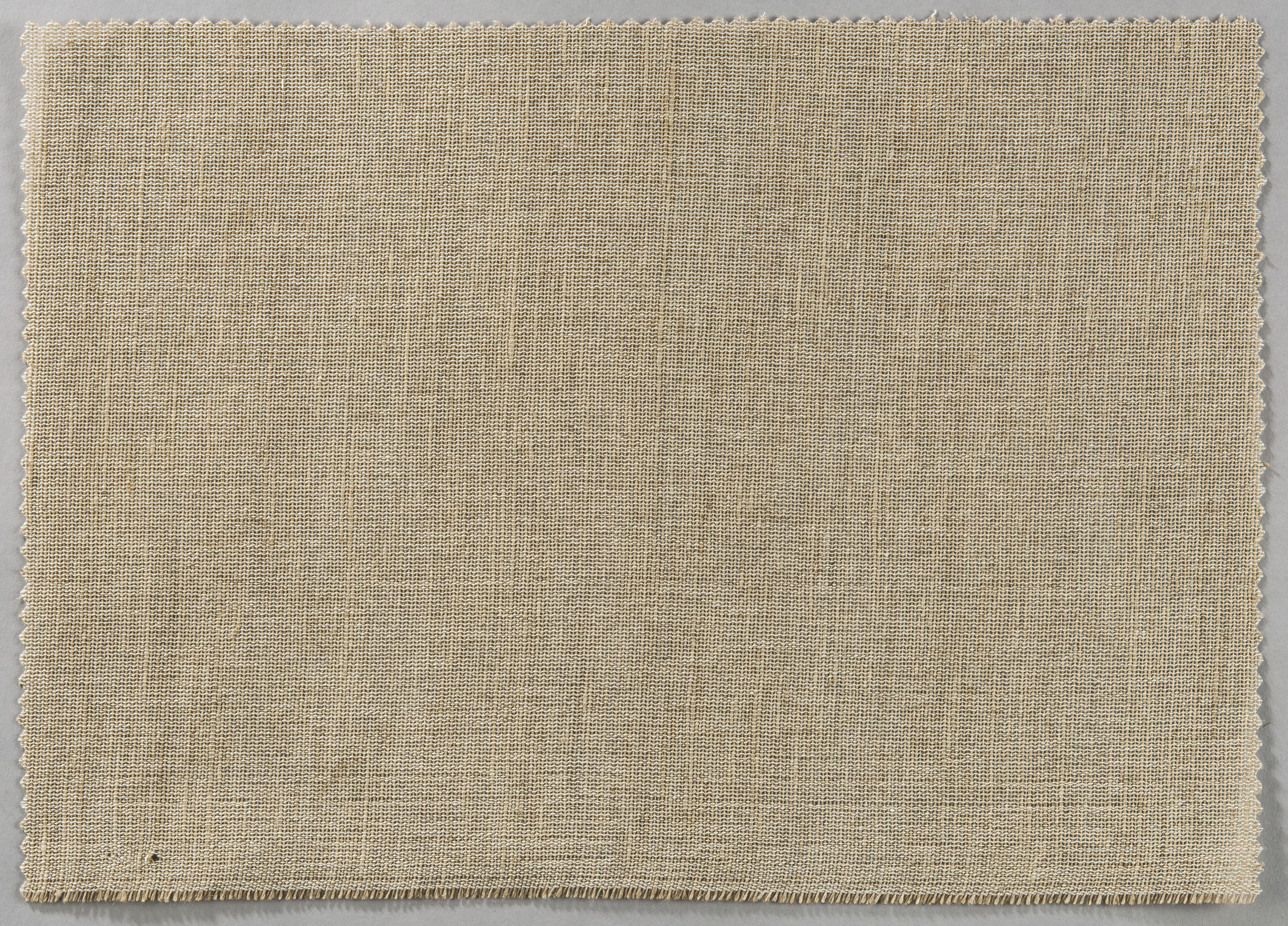 Naturelkleurig linnen tussenvoeringsstof, geweven in platbinding. De stof is gebruikt voor de versteviging van broekbanden.