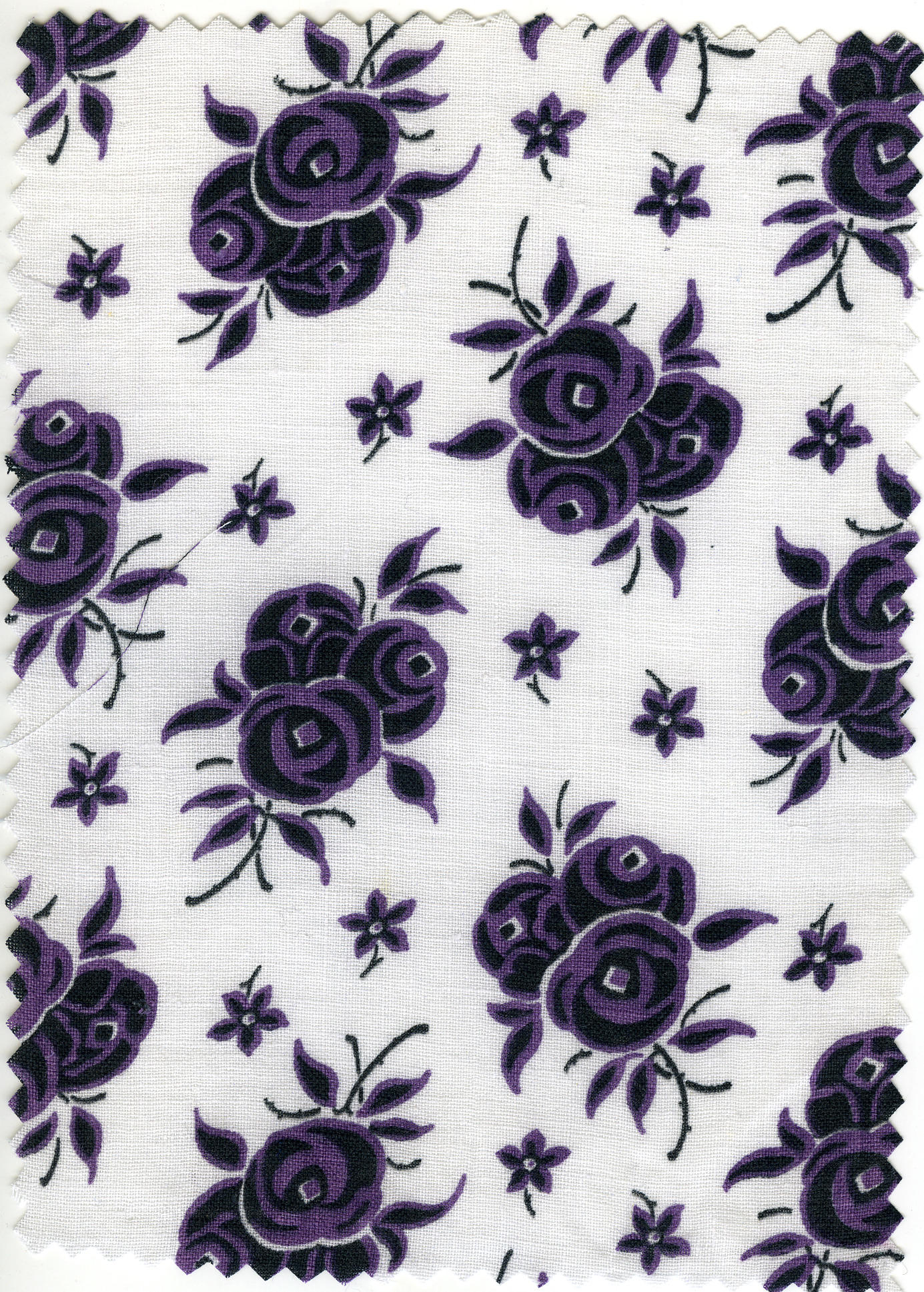 Gedessineerde katoen met een wit fond en bedrukt met zwart-paarse motieven, afkomstig van een kraplap uit Spakenburg. Een kraplap van deze stof kan gedragen worden bij de 'zevenwekenrouw' (in het lokale dialect: 'zeuvenwekesrouw'). In Spakenburg wordt deze rouw ook lichte rouw of soms pronkrouw genoemd. Bij een kraplap voor de 'zevenwekenrouw' moet de ondergrond wit ...